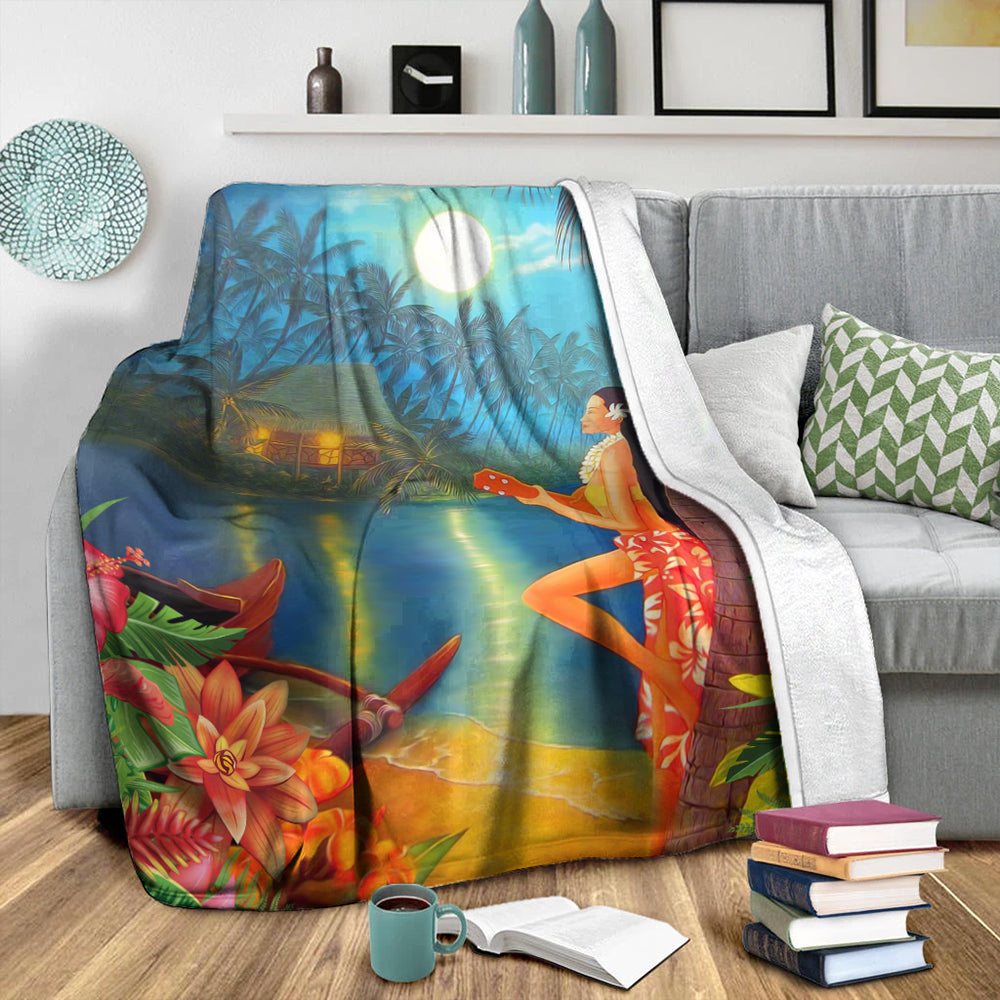Hawaii Premium Blanket Hula Girl Sing In Village