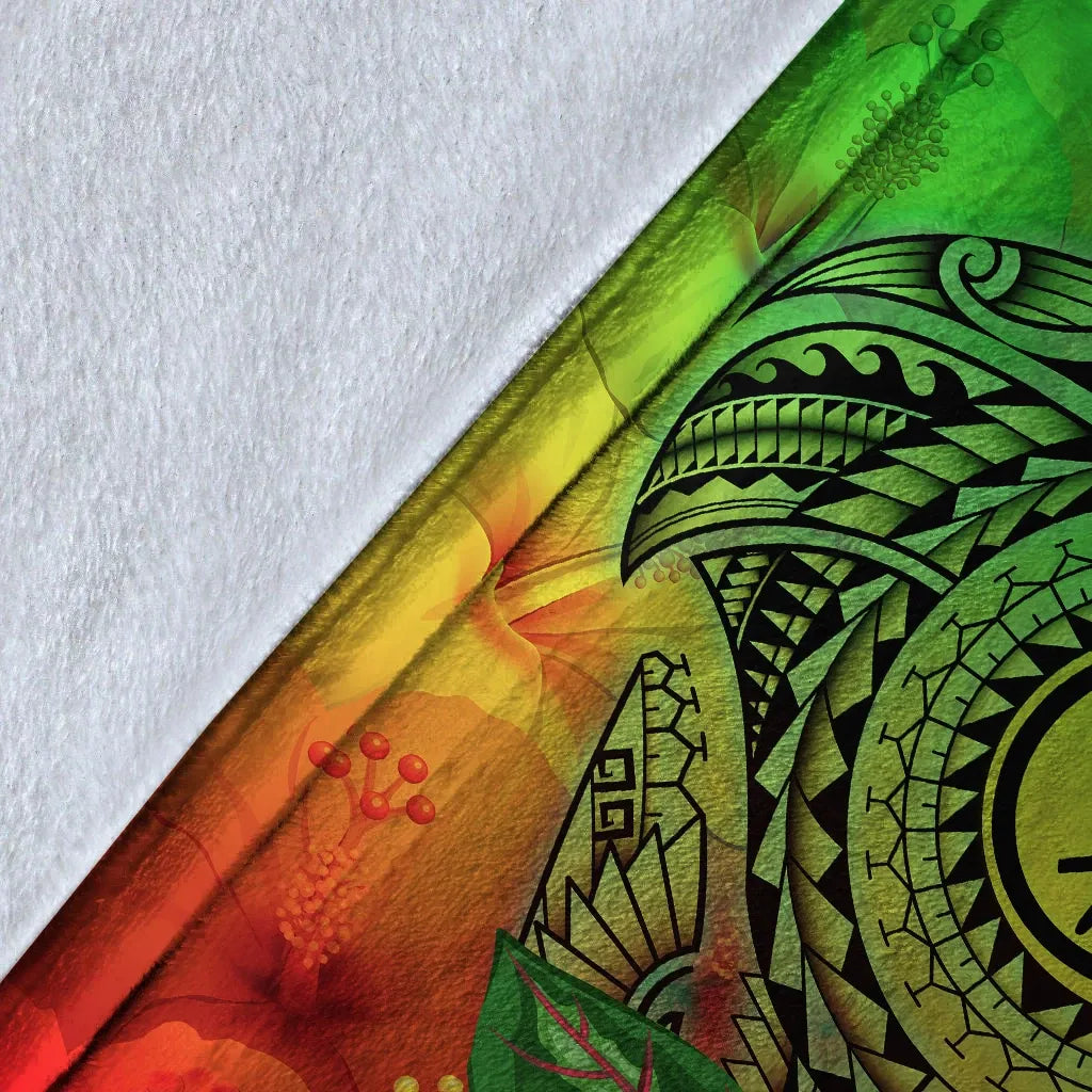 Hawaii Premium Blanket - Kanaka Maoli Manta Ray Tropical Flowers (Green)