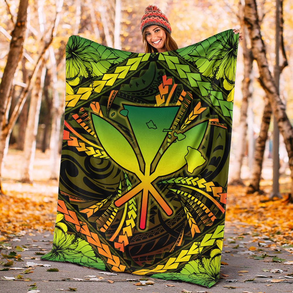 Hawaii Premium Blanket Kanaka Maoli Map Hibiscus Polynesian Kanu