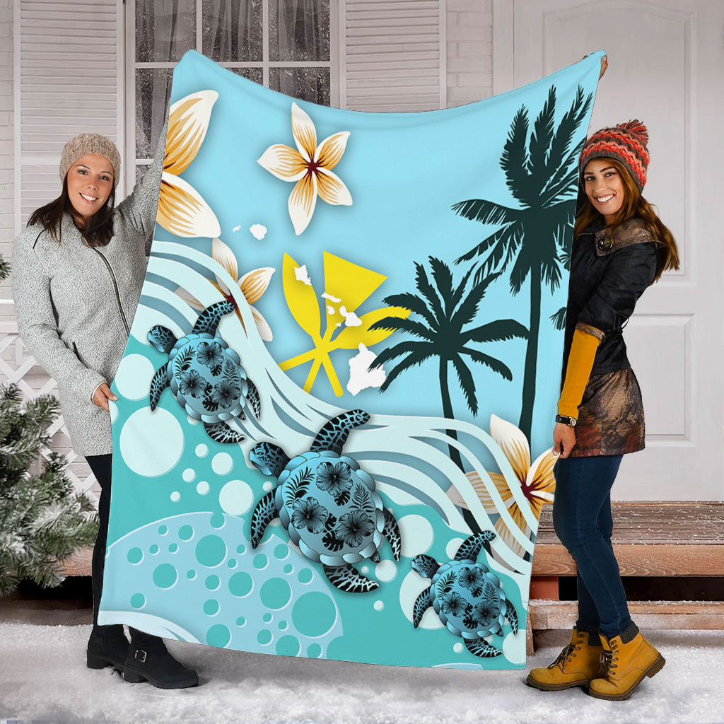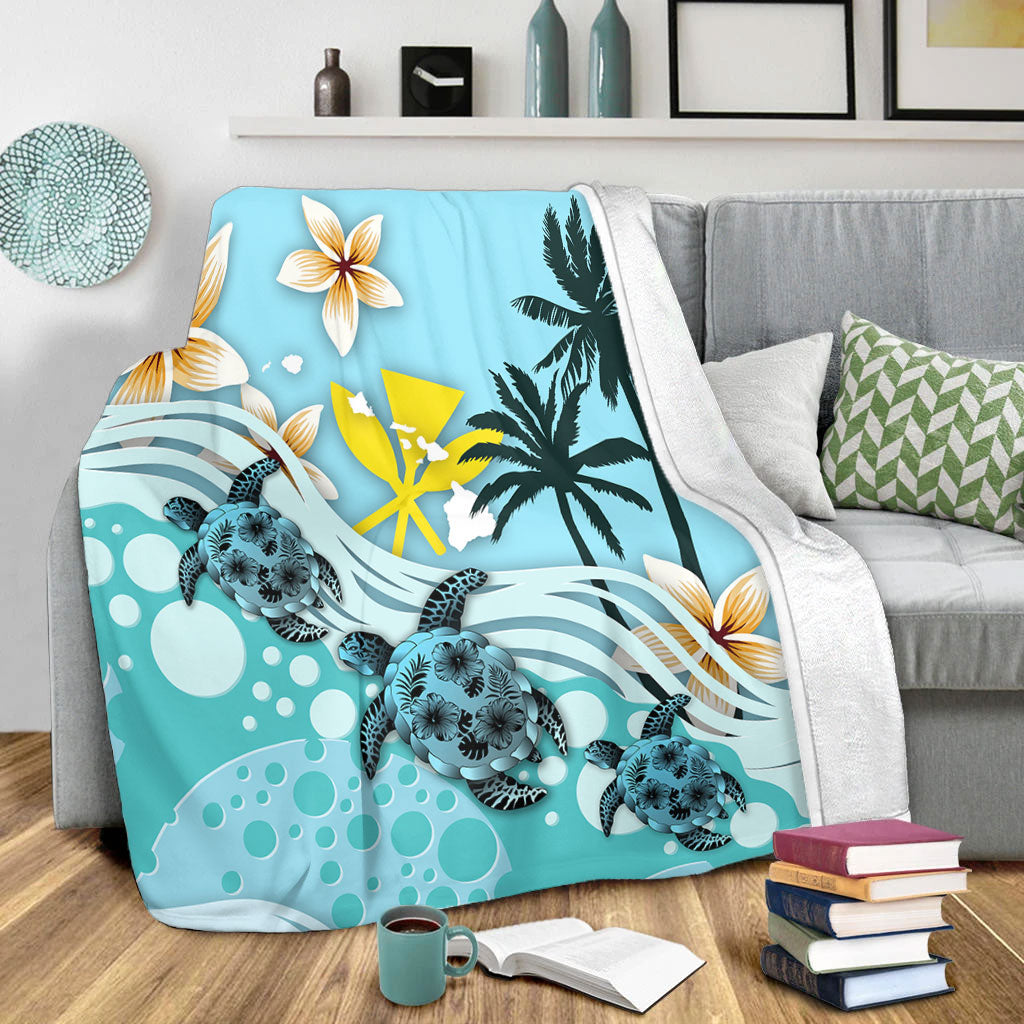 Hawaii Premium Blanket Kanaka Maoli Turte Blue Hibiscus