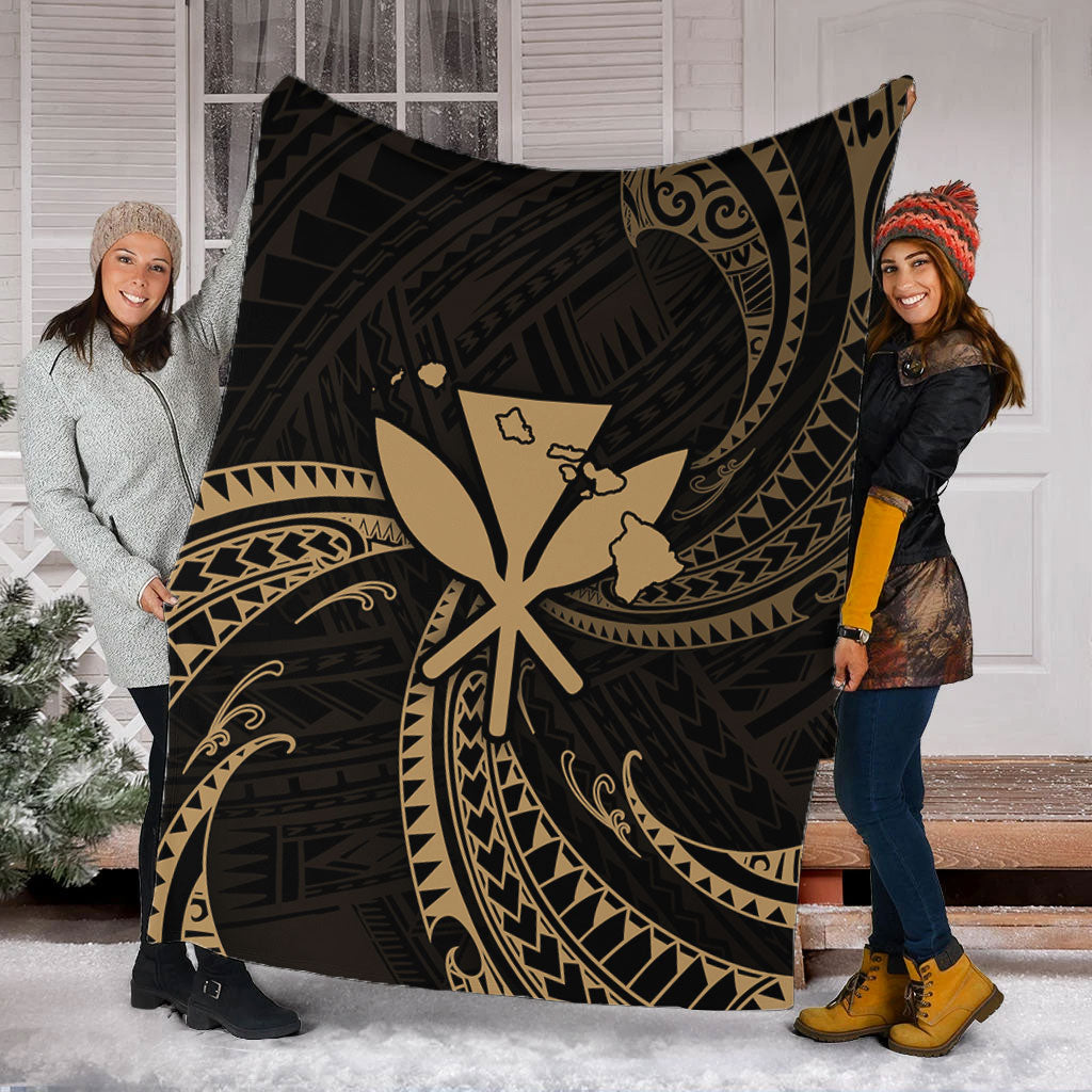 Hawaii Premium Blanket Kanaka Map Tribal Wave