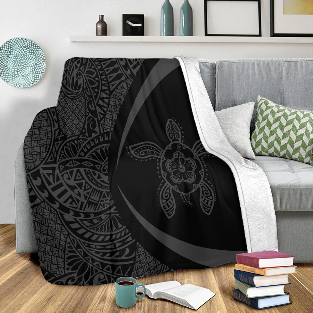Hawaii Premium Blanket Turtle Hibiscus Lauhala Black Gray Circle