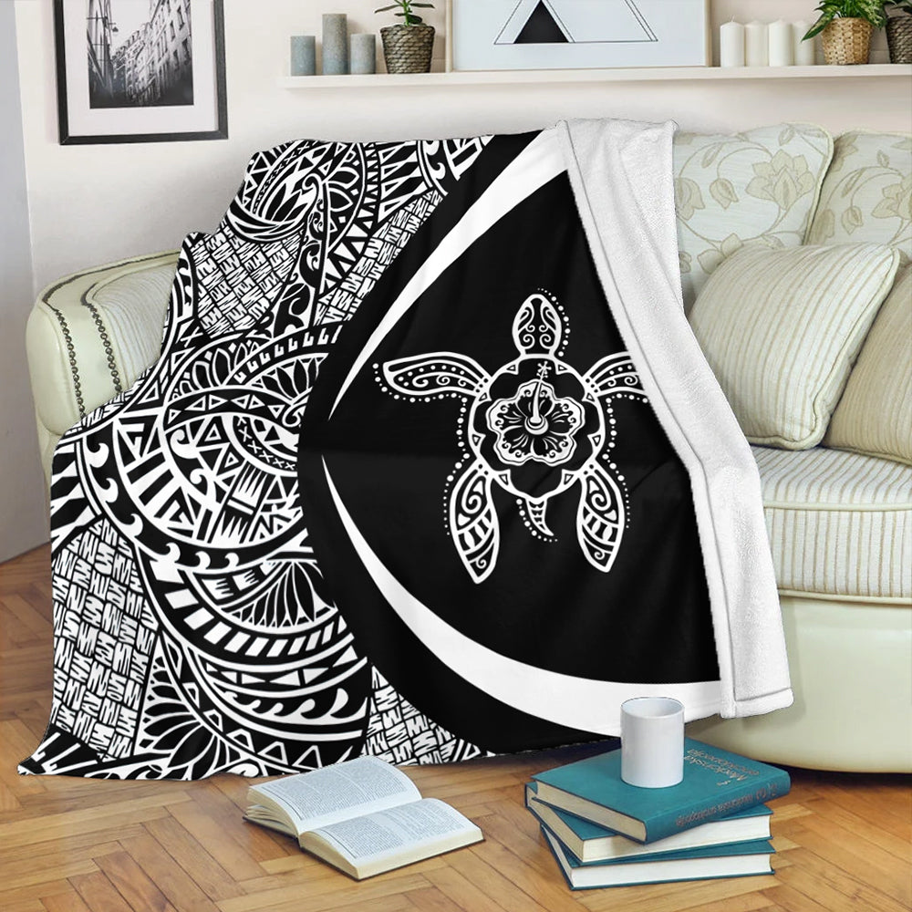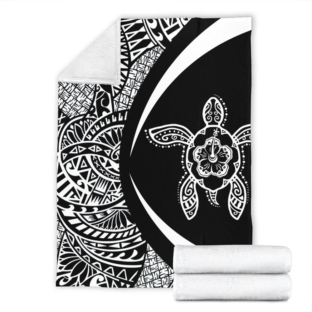 Hawaii Premium Blanket Turtle Hibiscus Lauhala Black White Circle