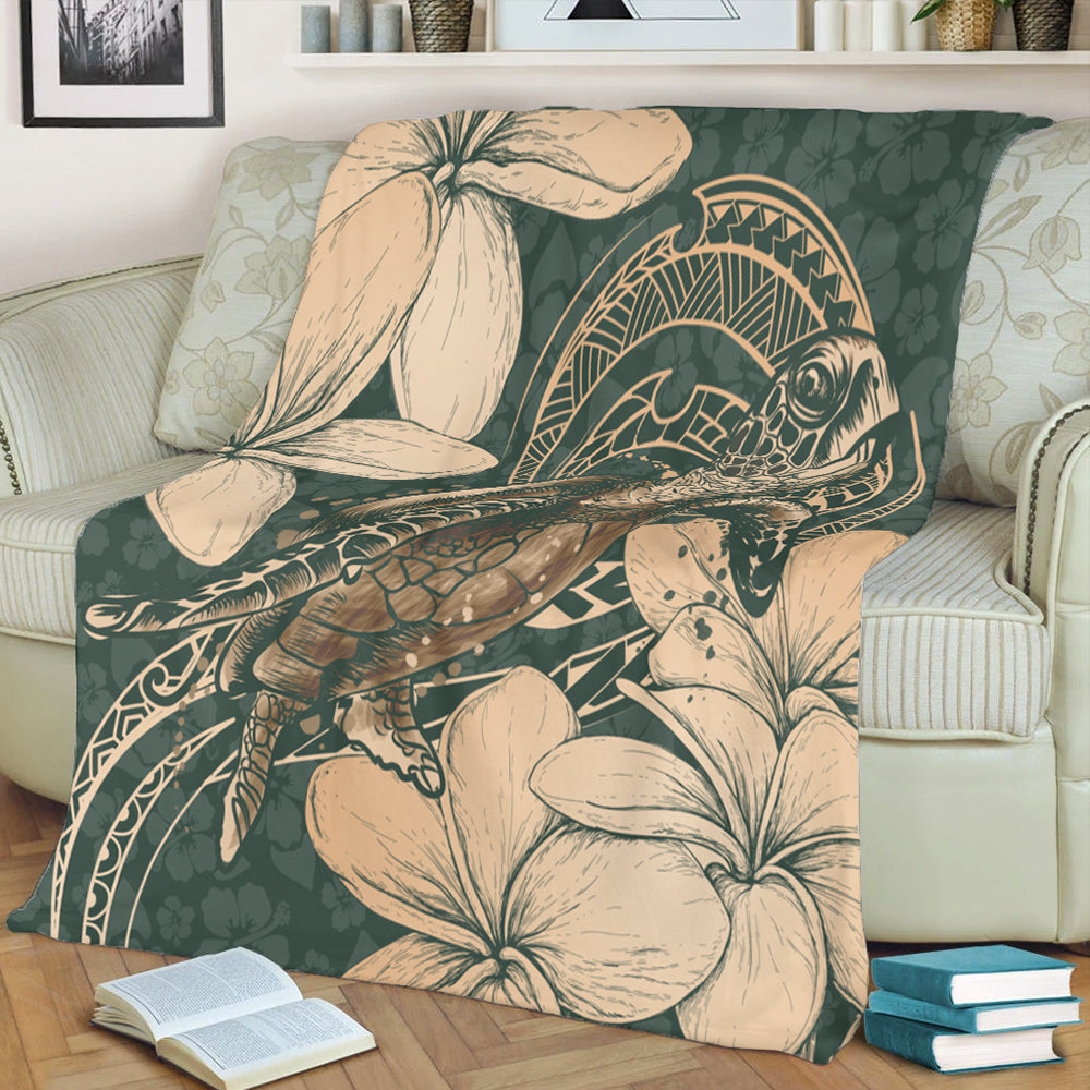 Hawaii Premium Blanket Turtle Map Plumeria Hibiscus Floral