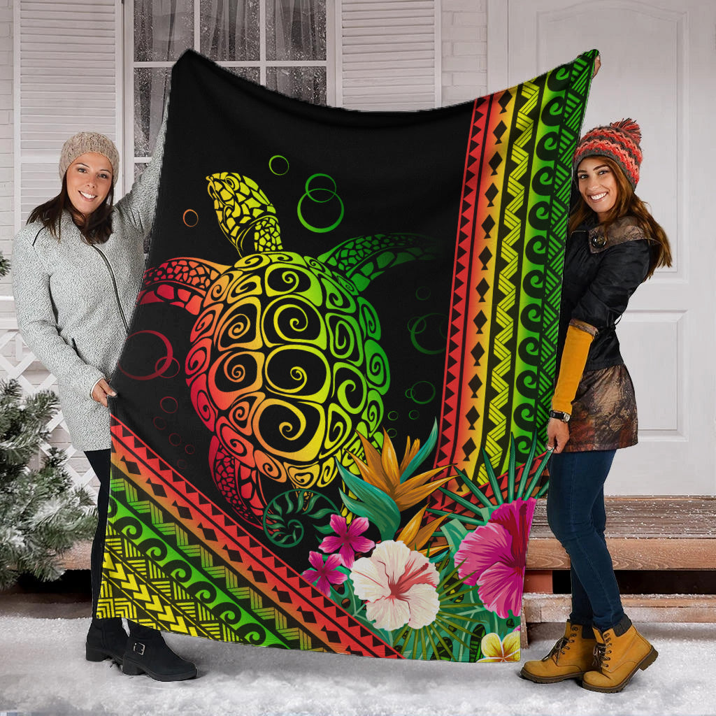 Hawaii Premium Blanket Turtle Polynesian Pattern Reggae Color