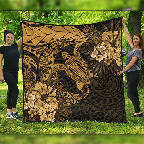 Hawaii Premium Quilt Hawaii Polynesian Turtle Tropical Golden