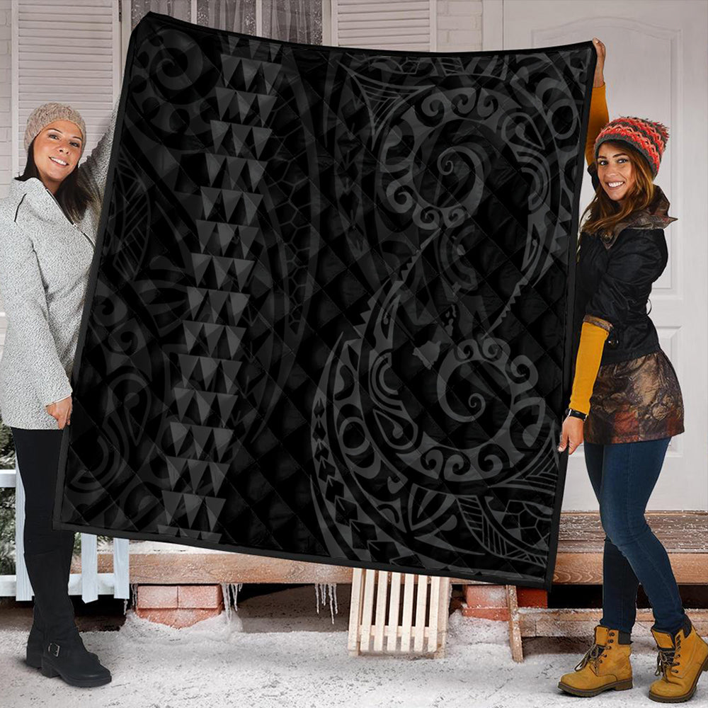 Hawaii Premium Quilt Hawaiian Map Kakau Style Gray