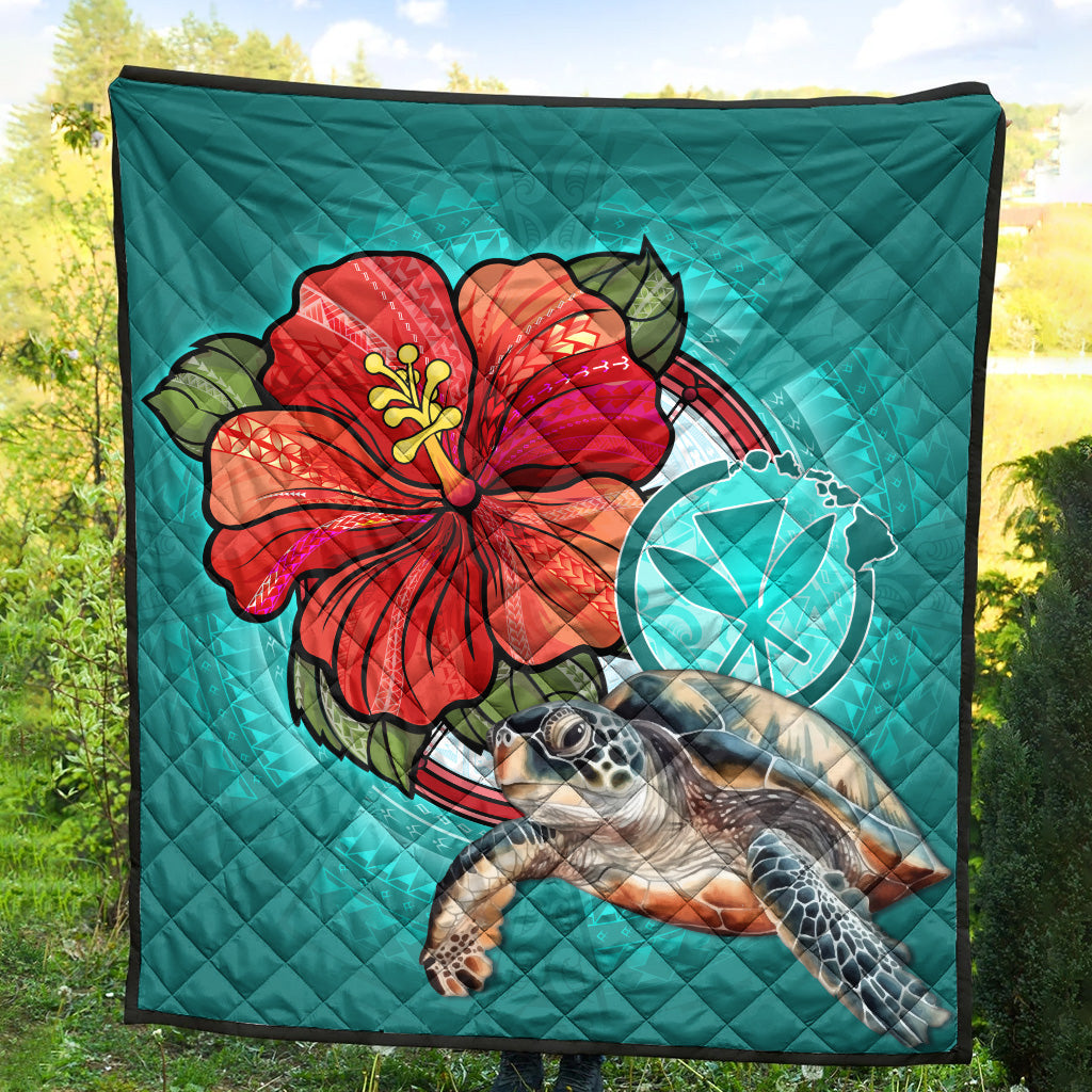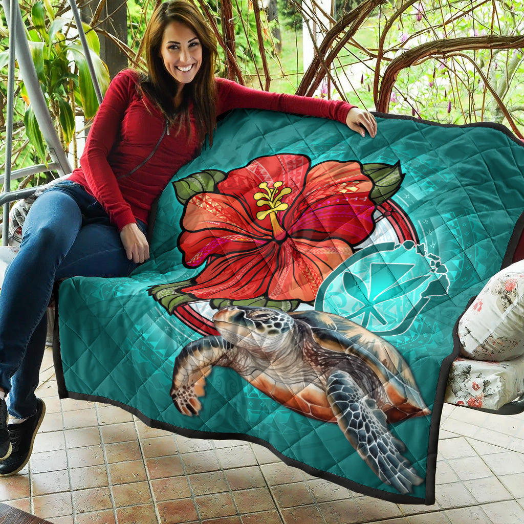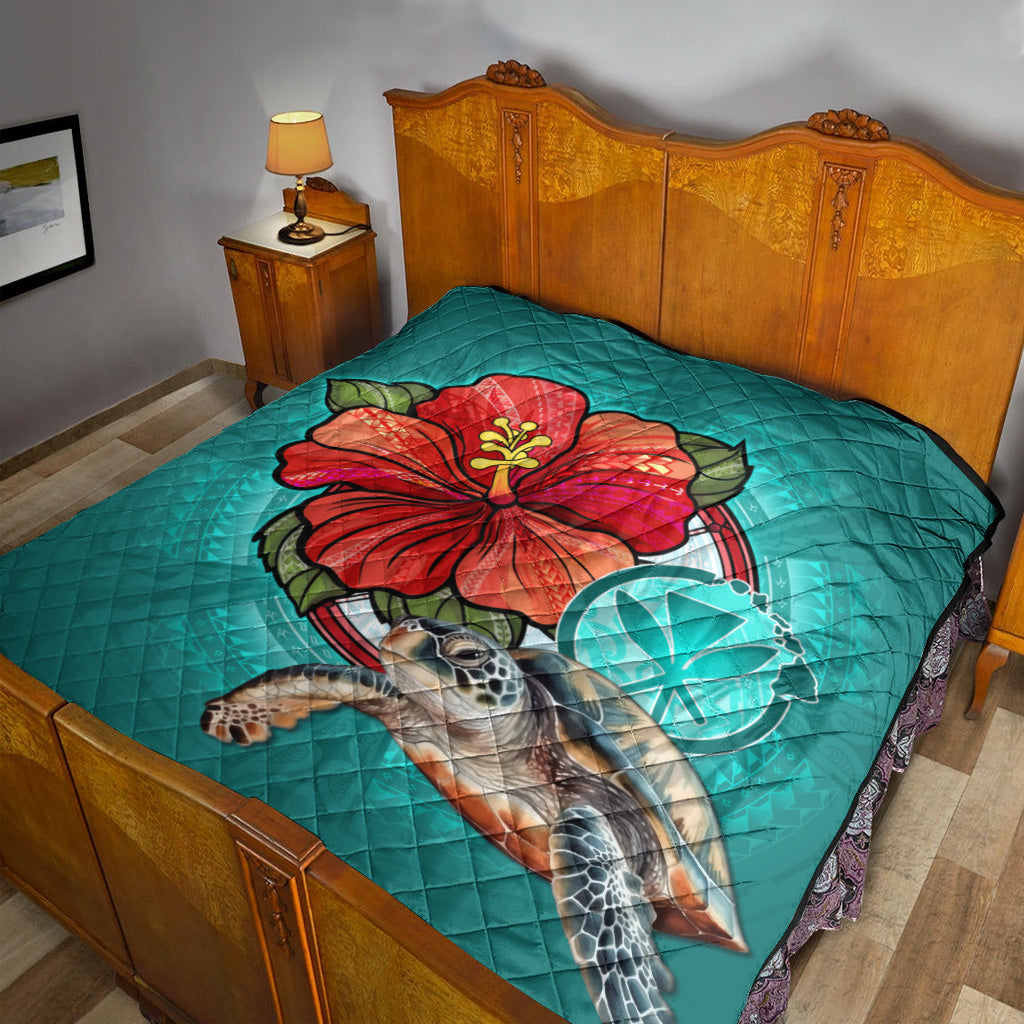 Hawaii Premium Quilt Hawaiian Map Turtle Hibiscus Flowers Polynesian Patterns Style