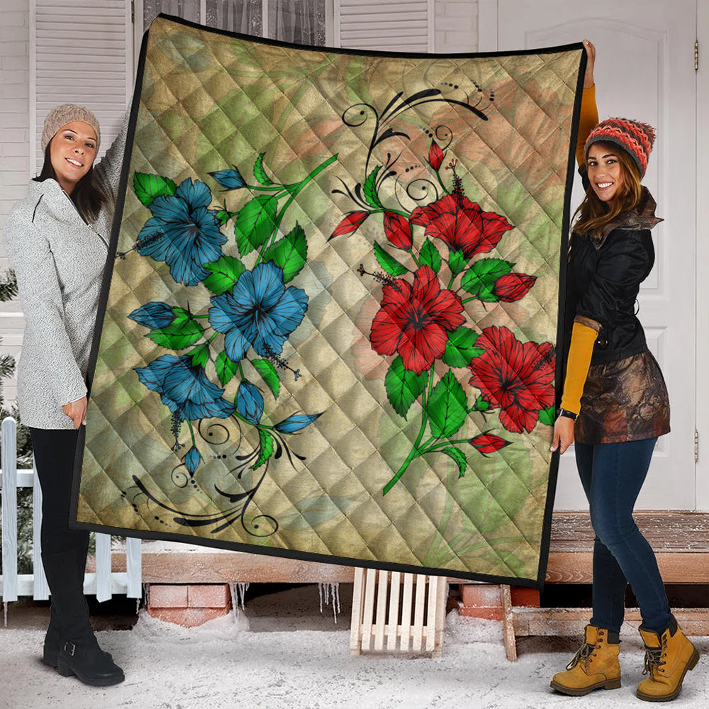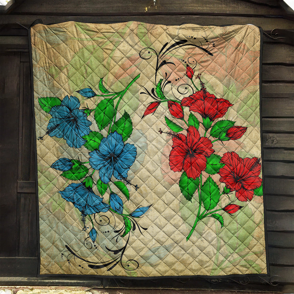 Hawaii Premium Quilt Hibiscus Blue And Red