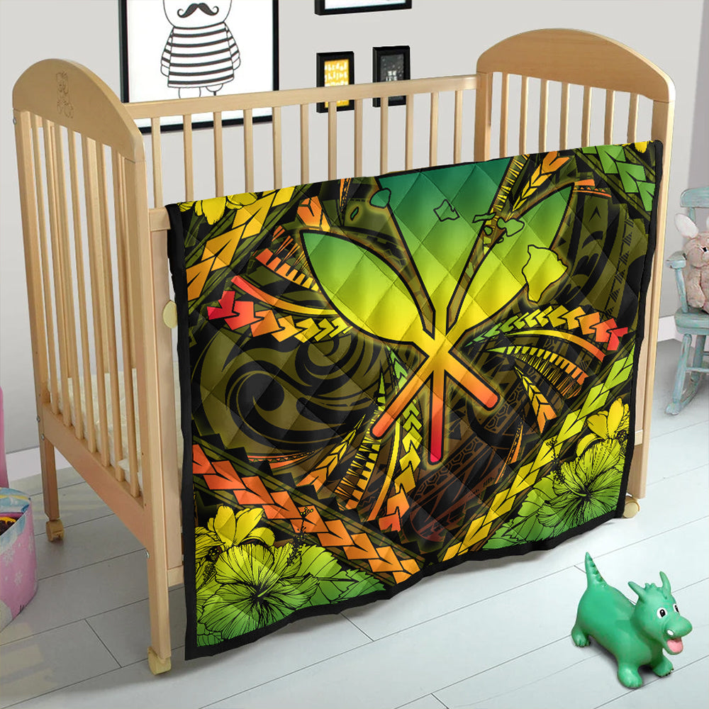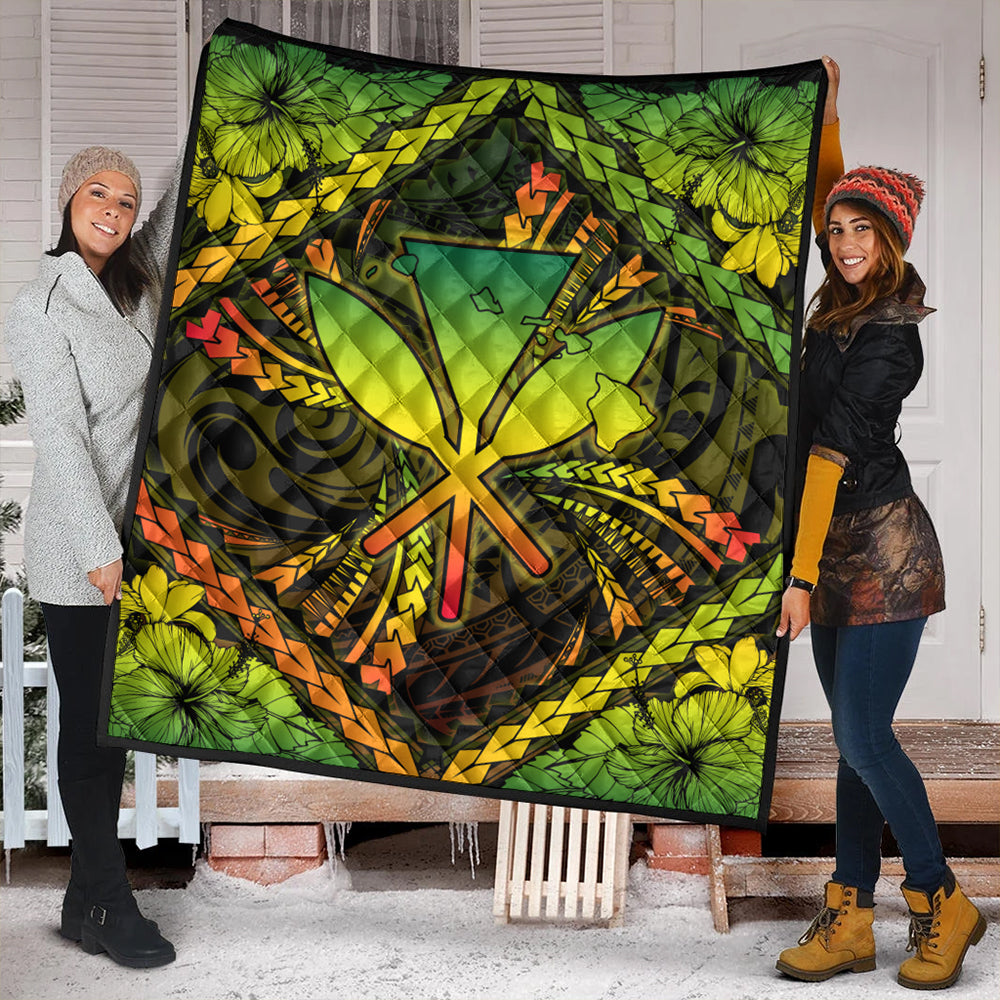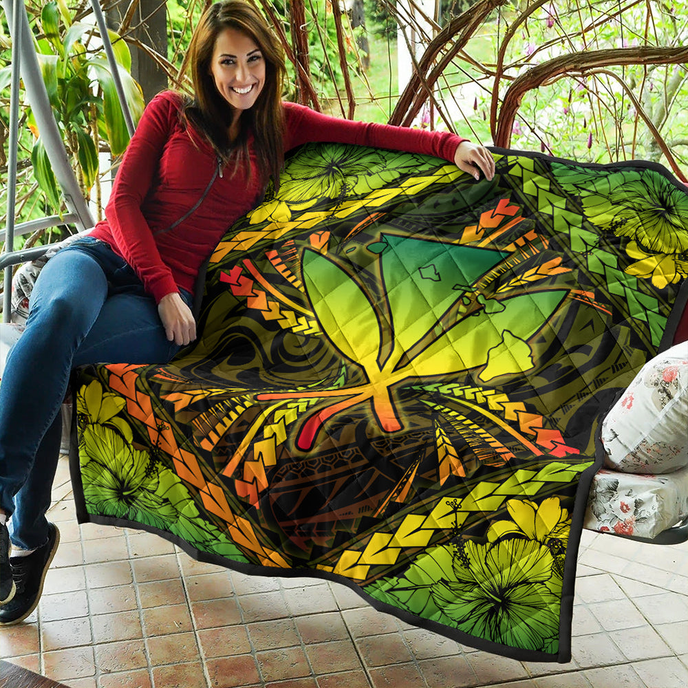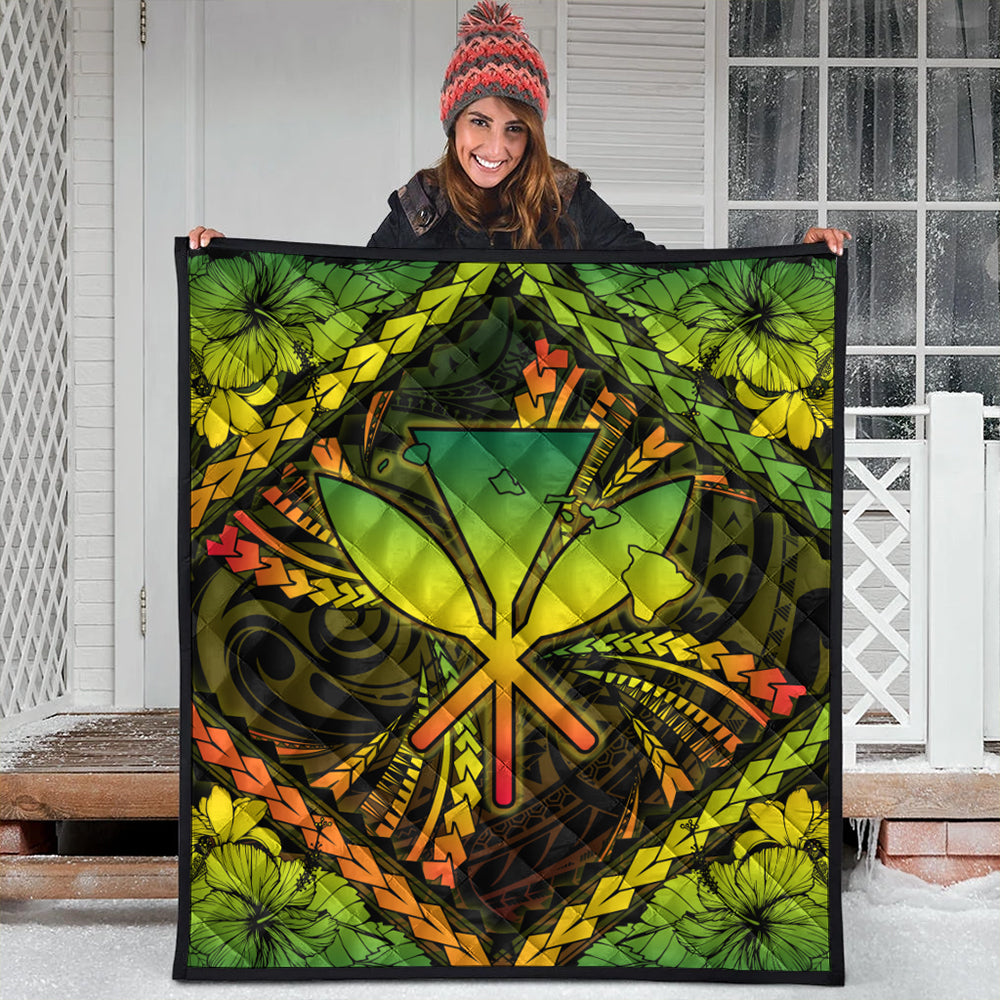 Hawaii Premium Quilt Kanaka Maoli Map Hibiscus Polynesian Kanu