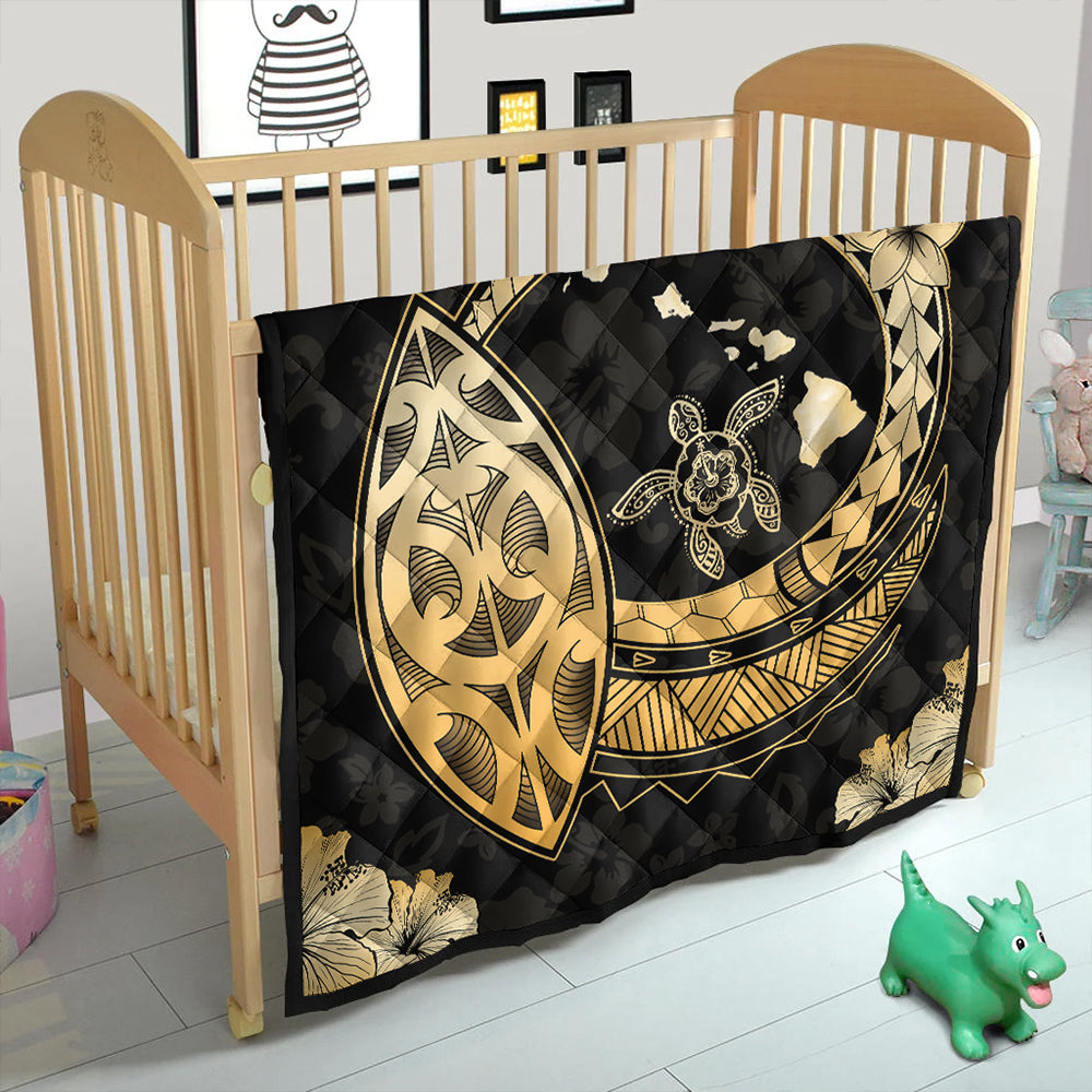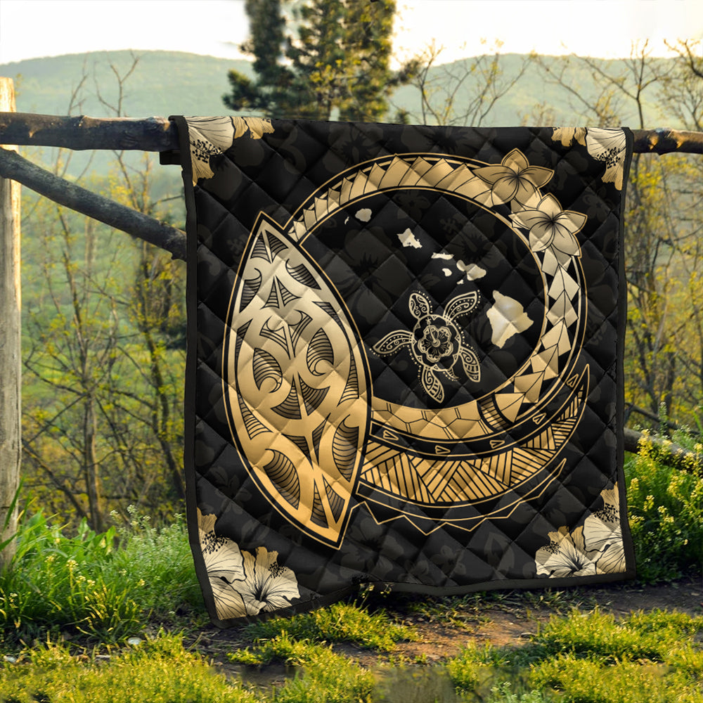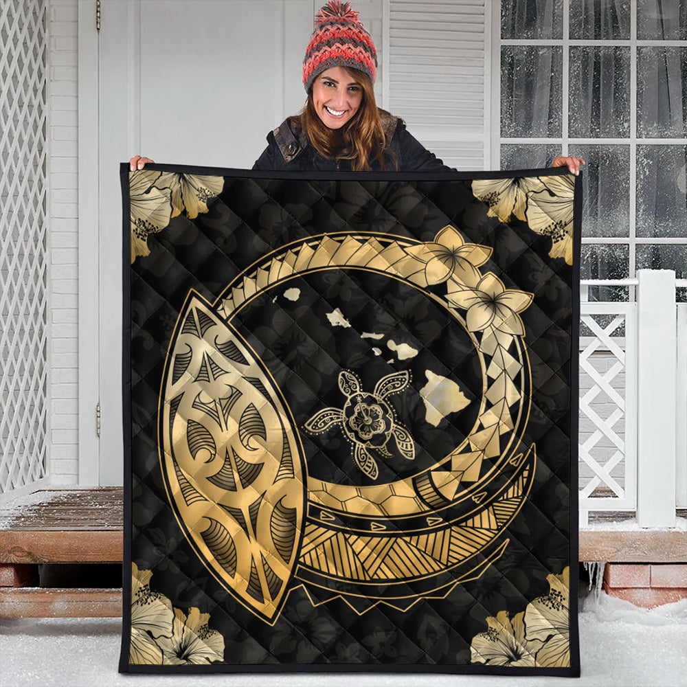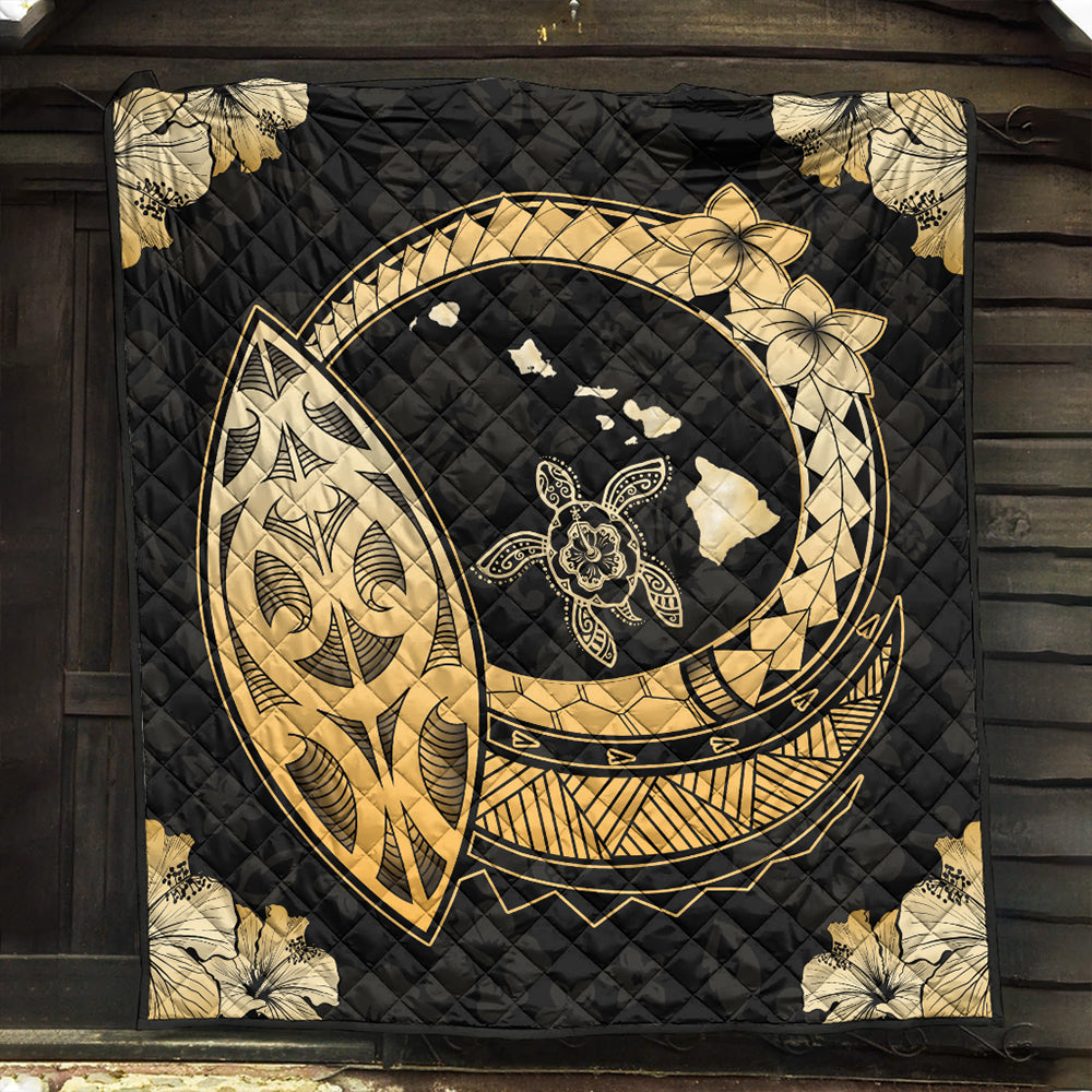 Hawaii Premium Quilt Map Honu Hibiscus Polynesian Gold