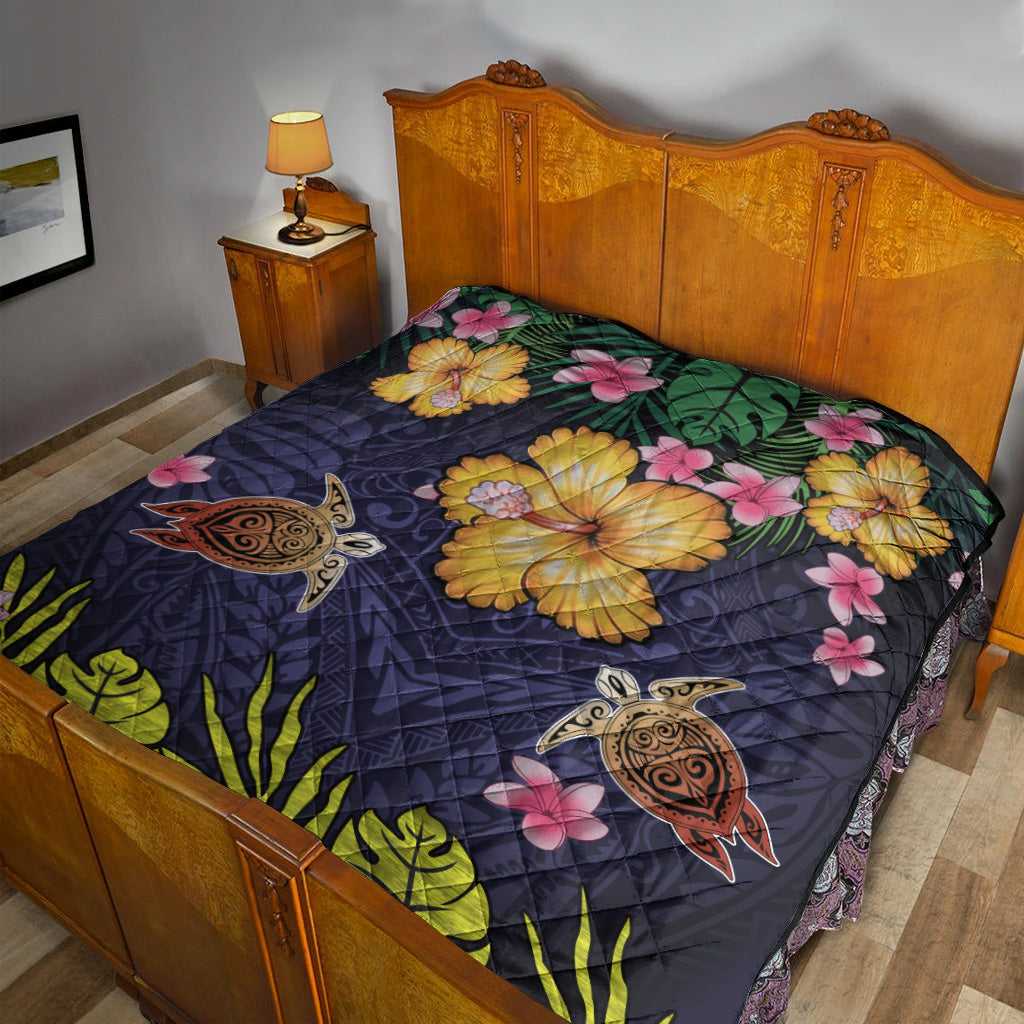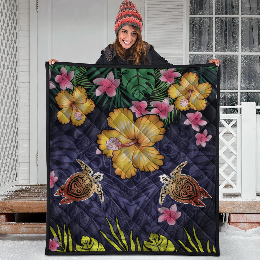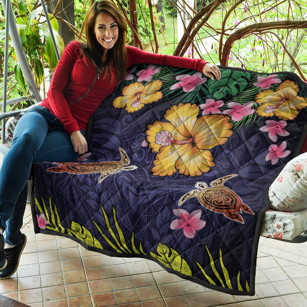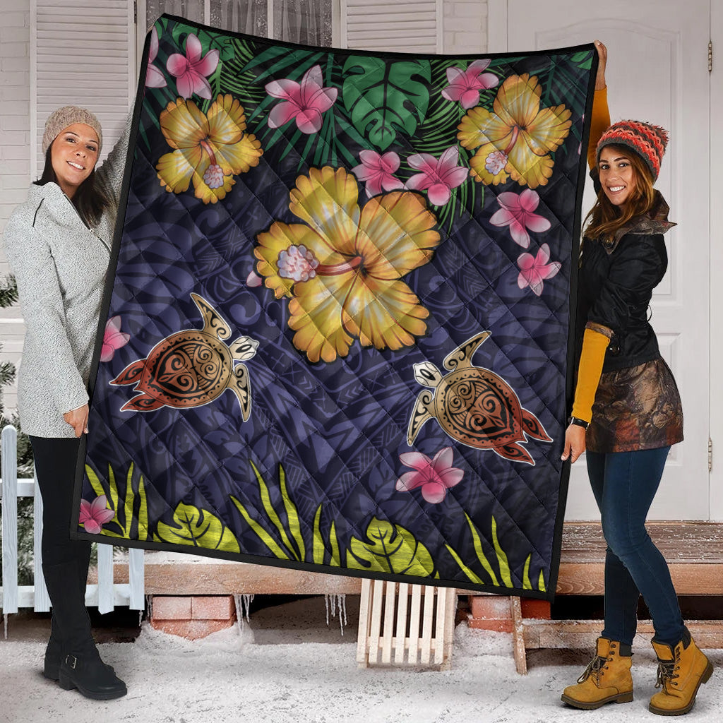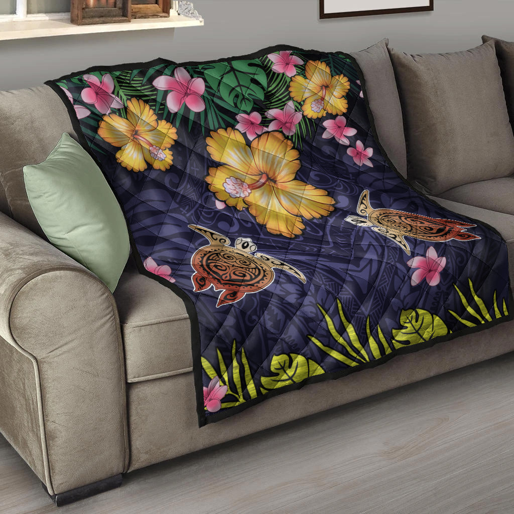 Hawaii Premium Quilt Polynesian Patterns Turtle Couple Hibiscus Plumeria Flowers