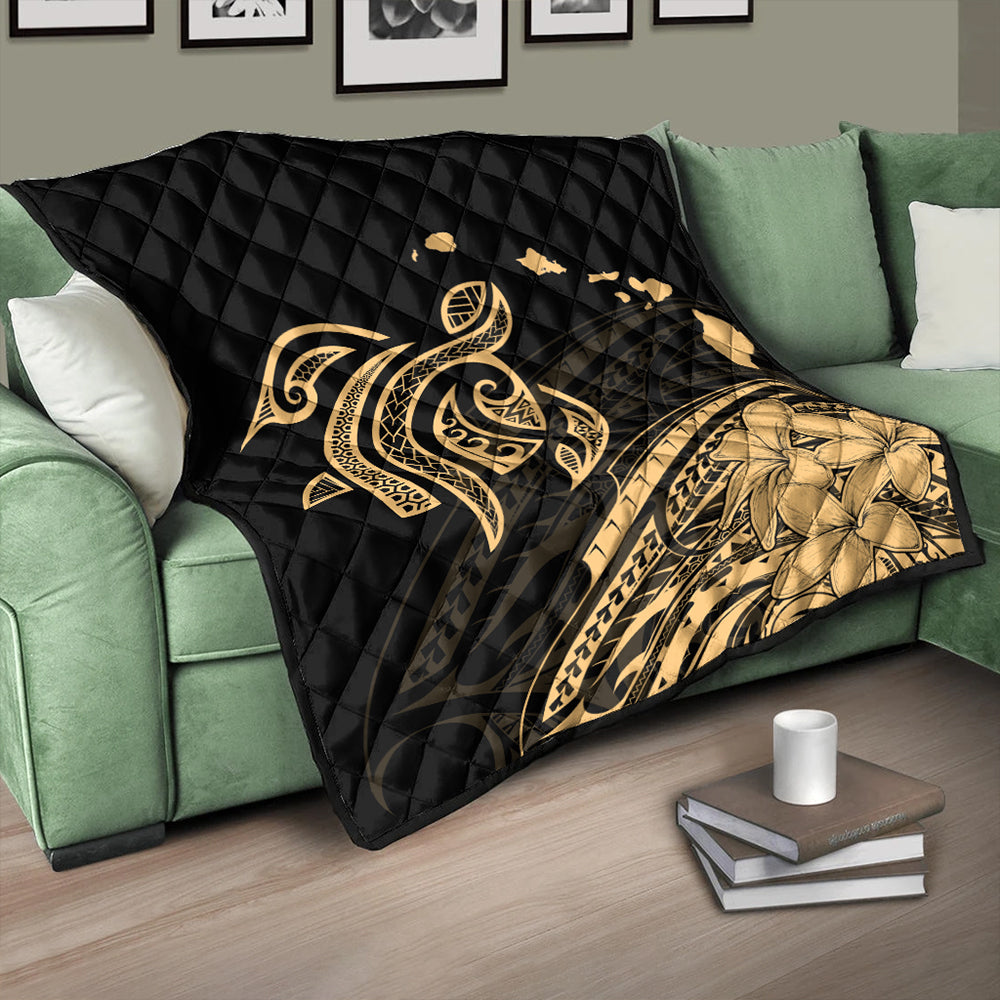 Hawaii Premium Quilt Turtle Polynesian Map Plumeria Gold