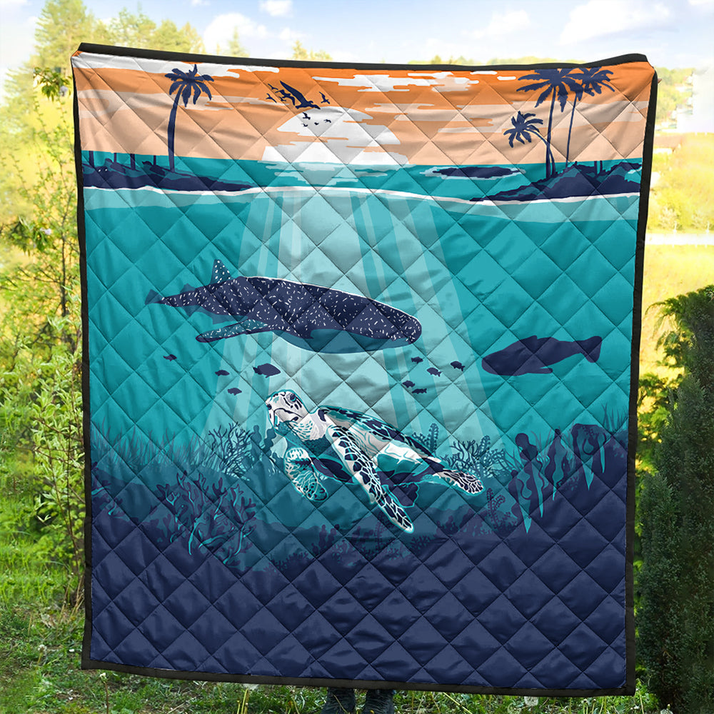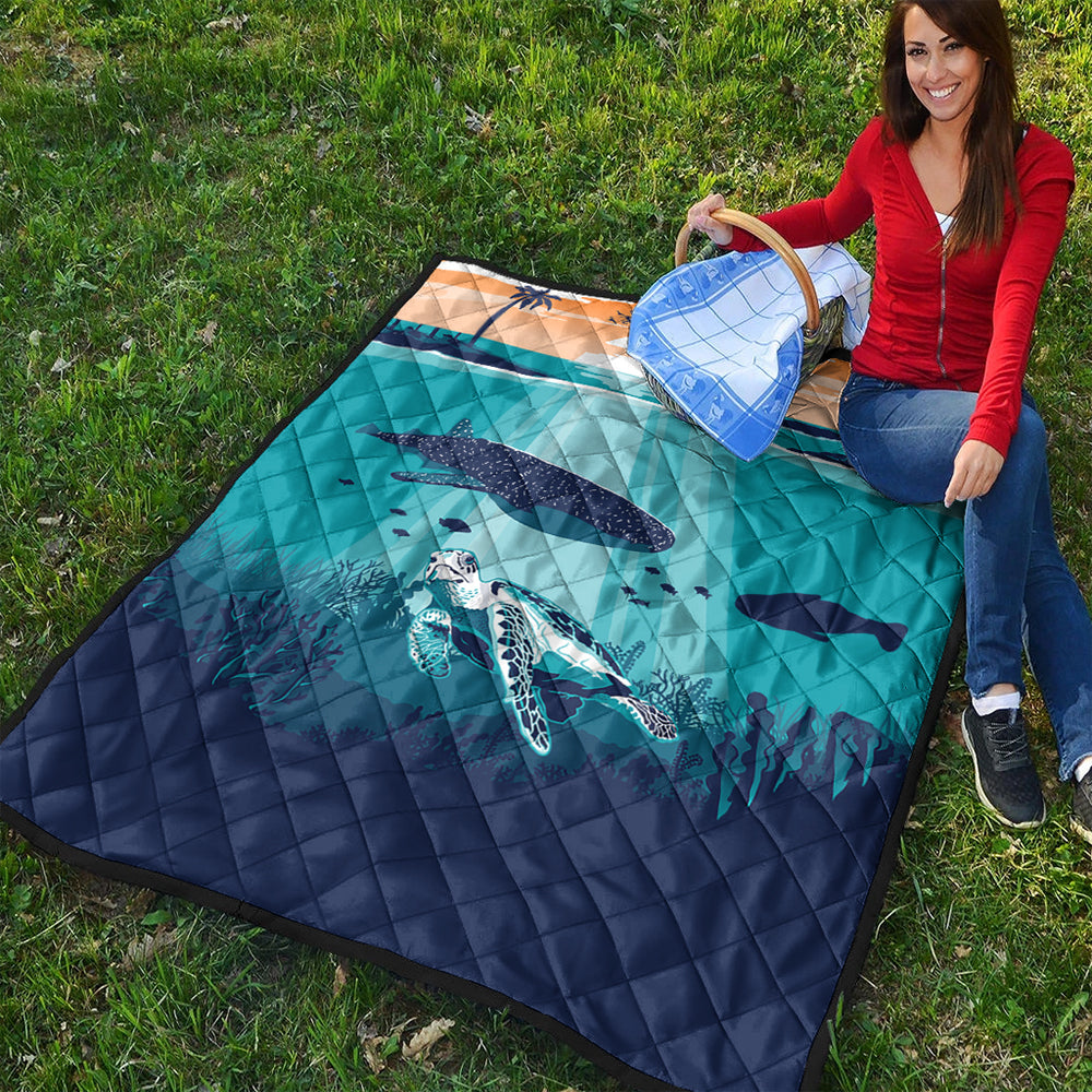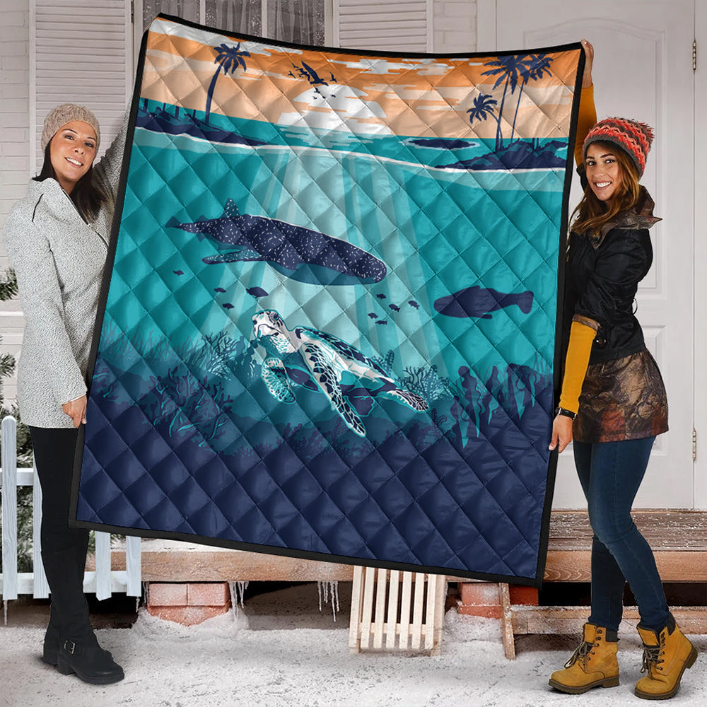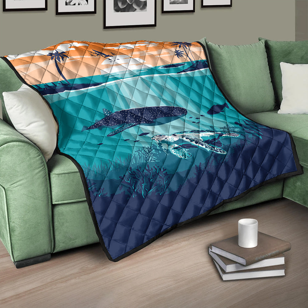 Hawaii Premium Quilt Whale And Turtle In Sunset Polynesian