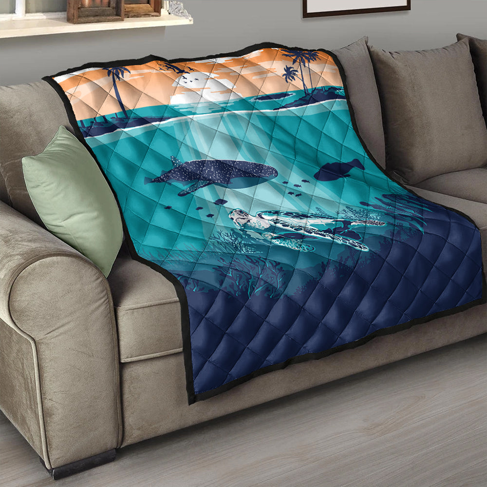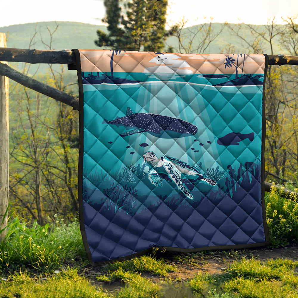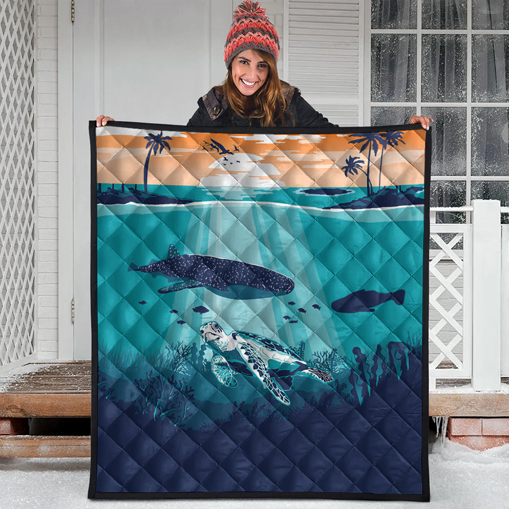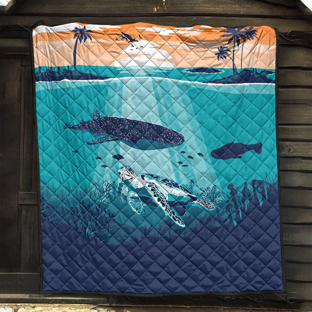 Hawaii Premium Quilt Whale And Turtle In Sunset Polynesian
