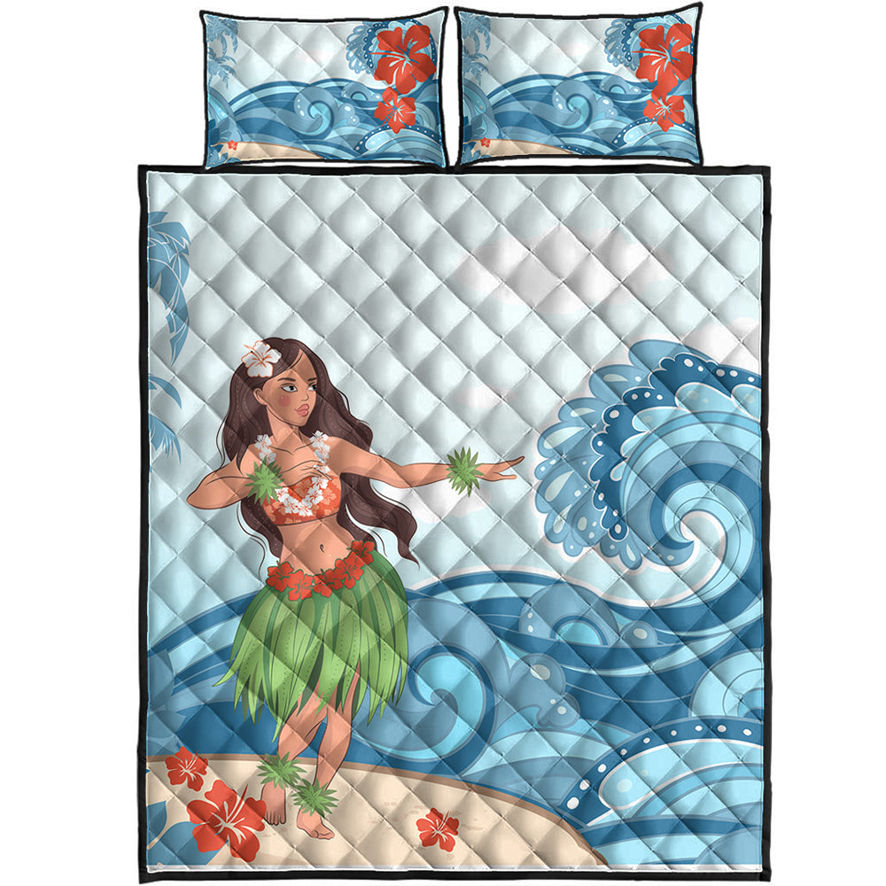 Hawaii Quilt Bed Set Hula Dance Cartoon