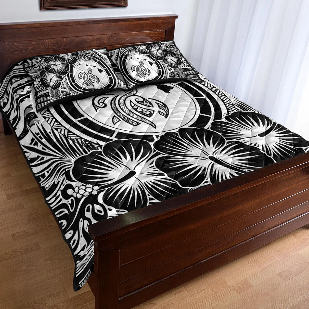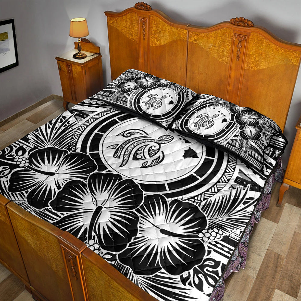 Hawaii Quilt Bed Set Map Honu Hibiscus Polynesian White