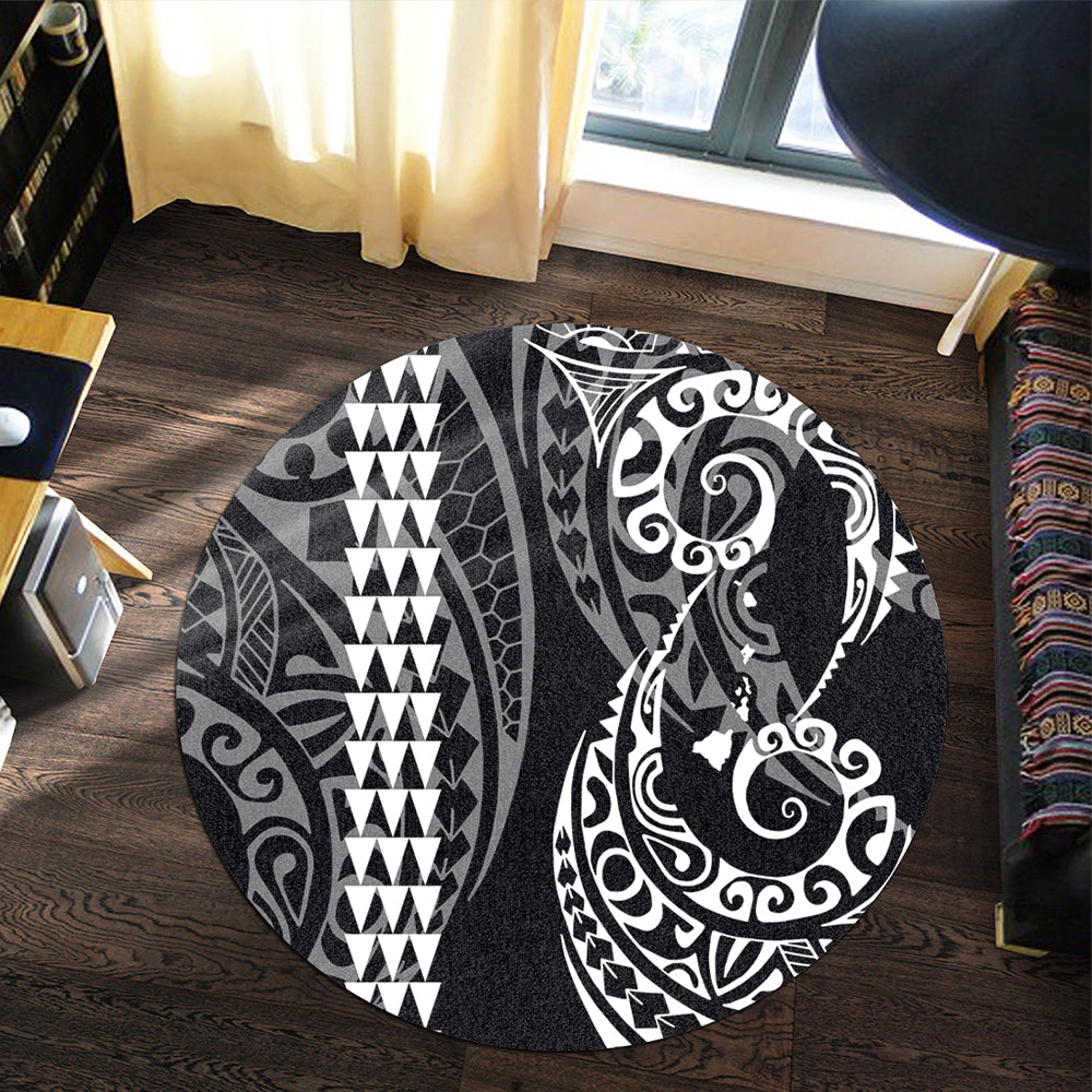 Hawaii Round Rug Hawaiian Map Kakau Style White