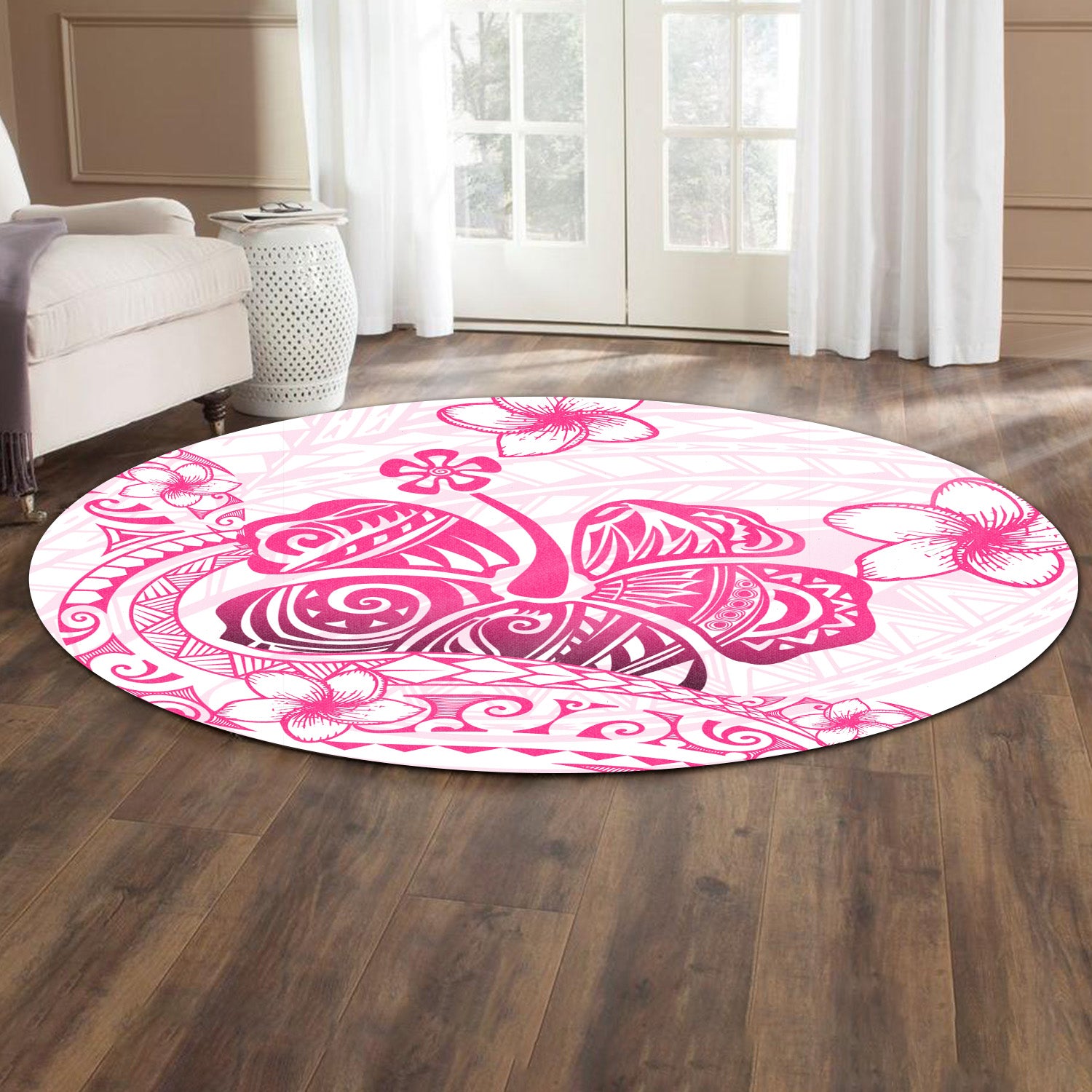Hawaii Round Rug Pink Hibiscus And Plumeria Flowers Polynesian Decor