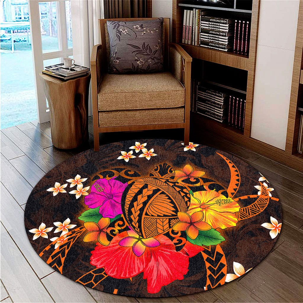 Hawaii Round Rug Polynesia Tribal Turtle Tropical Flower
