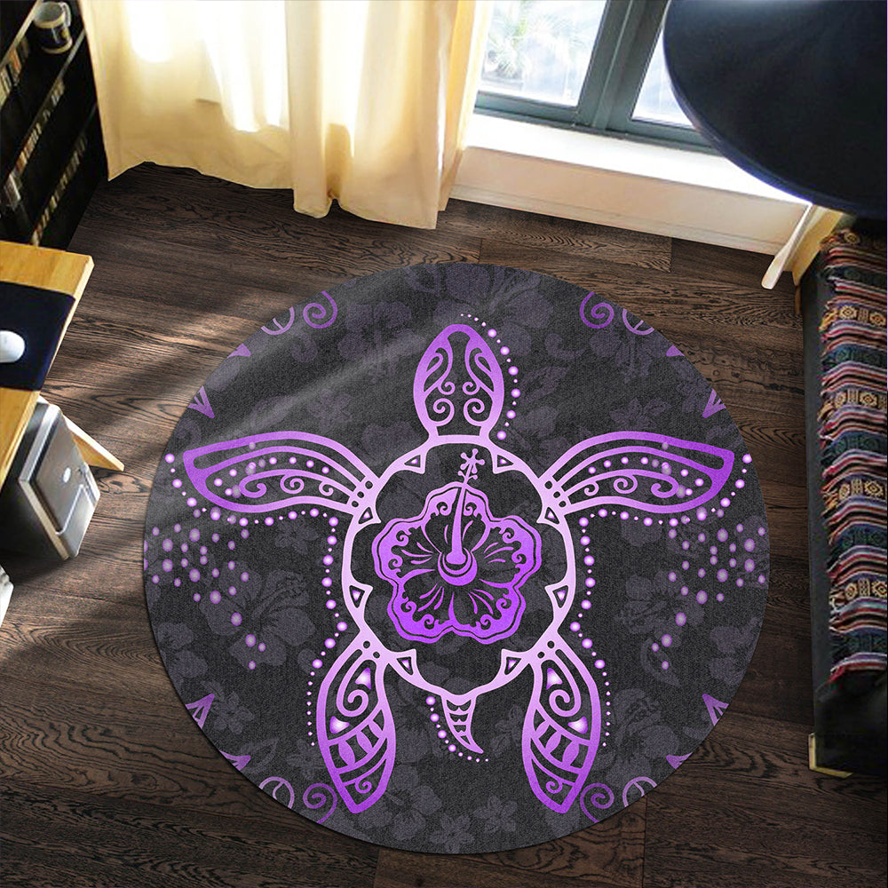 Hawaii Round Rug Turtle Hibiscus Violet