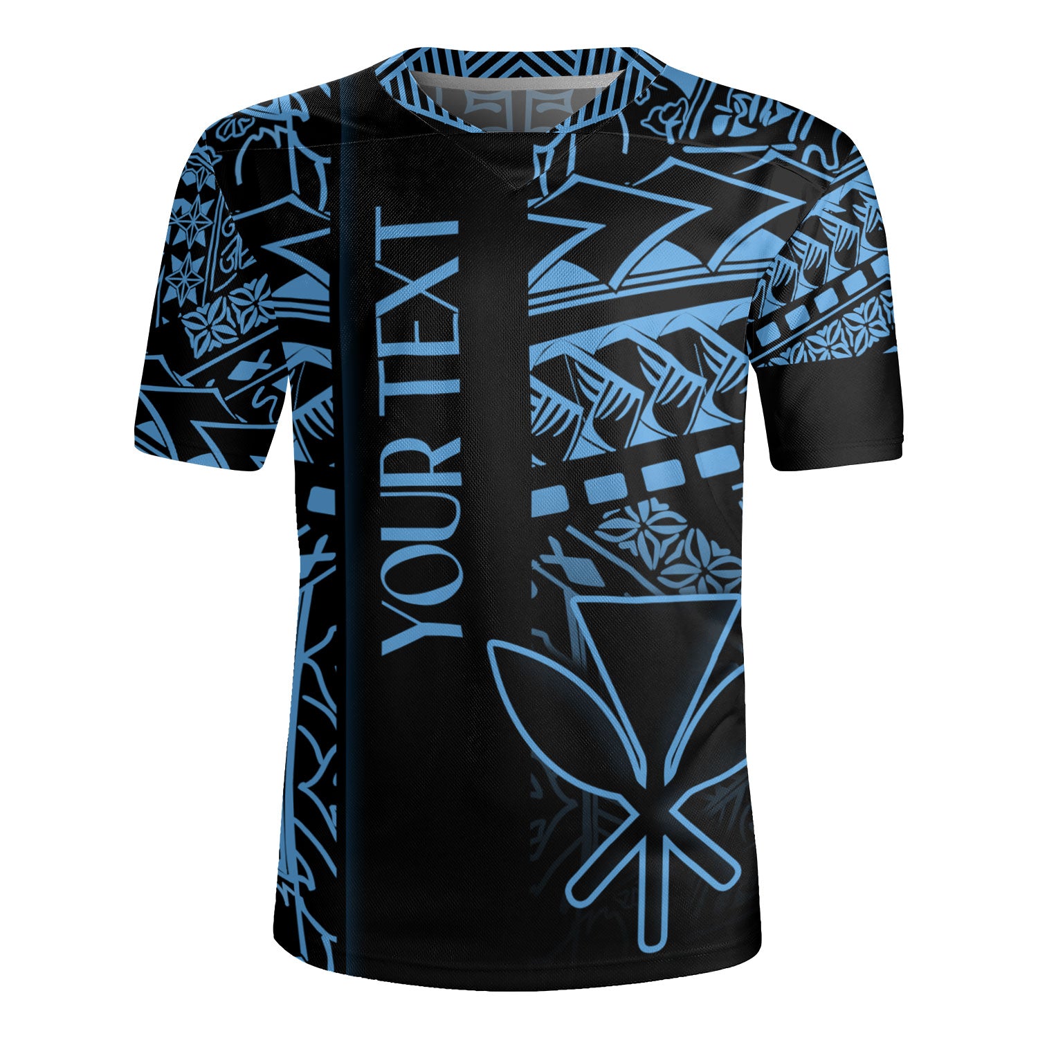 Hawaii Rugby Jersey Custom Kanaka Maoli Hawaiian Blue Tribal Pattern