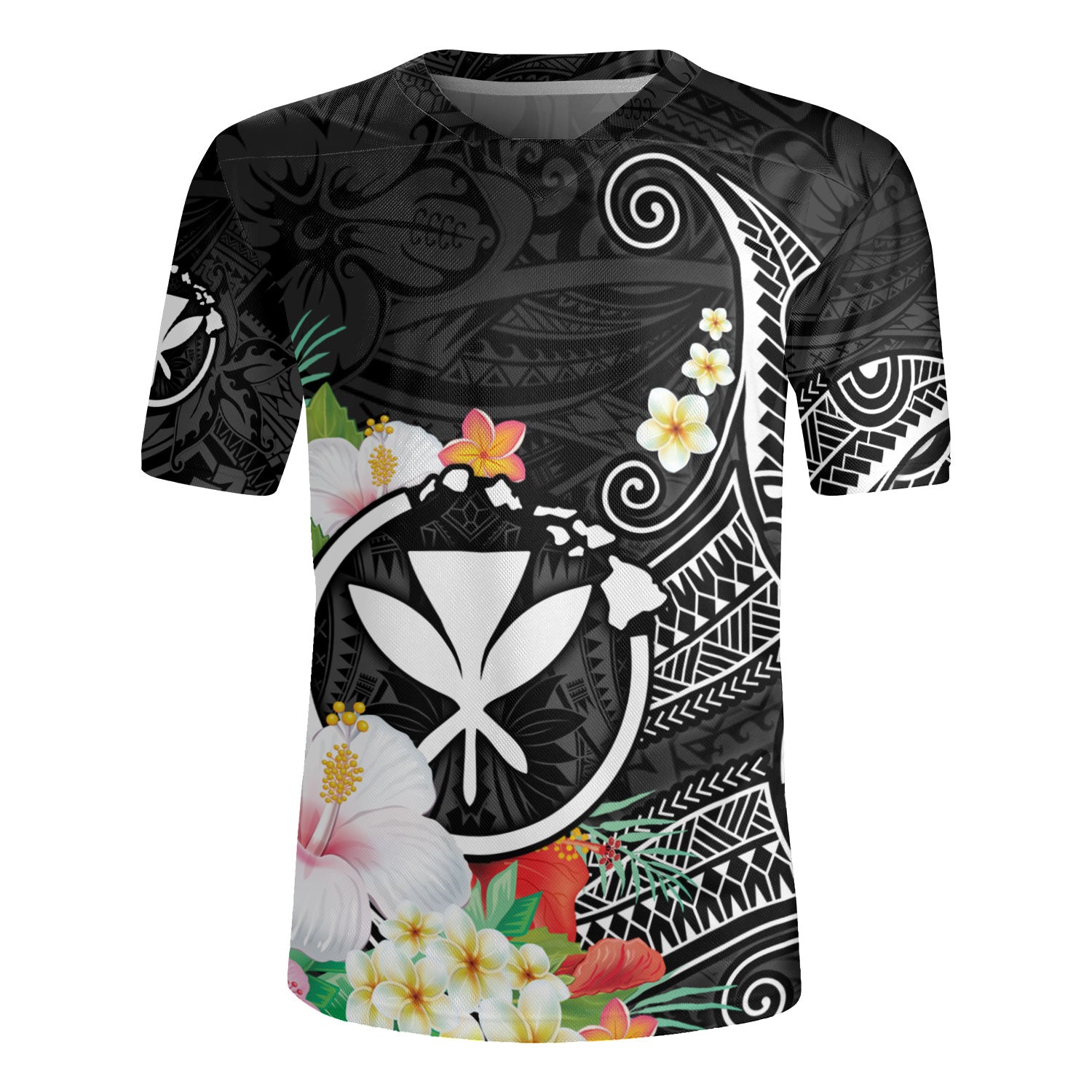 Hawaii Rugby Jersey Custom Polynesian Curve Pattern Design With Tropical Floral Collection
