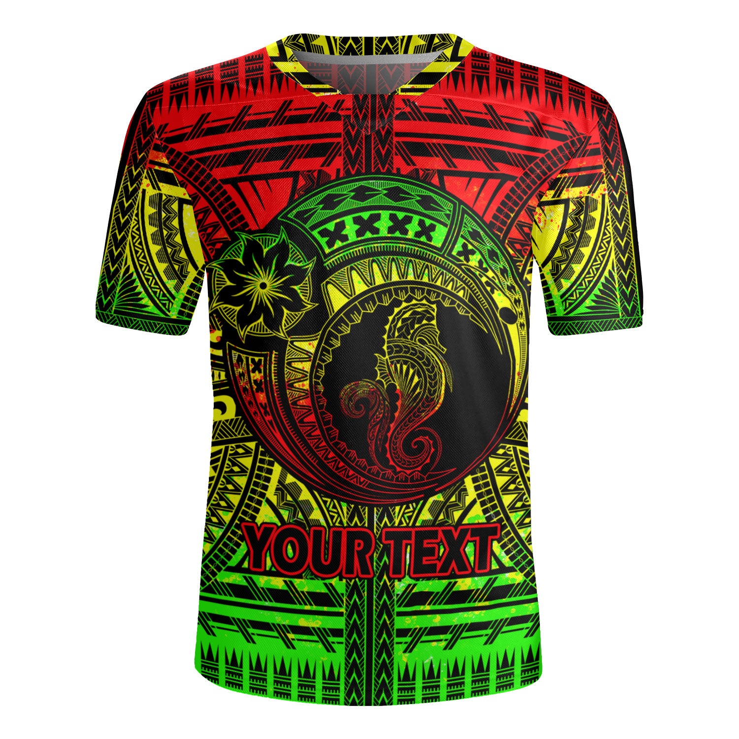 Hawaii Rugby Jersey Custom Seahorse Polynesian Tattoo Reggae