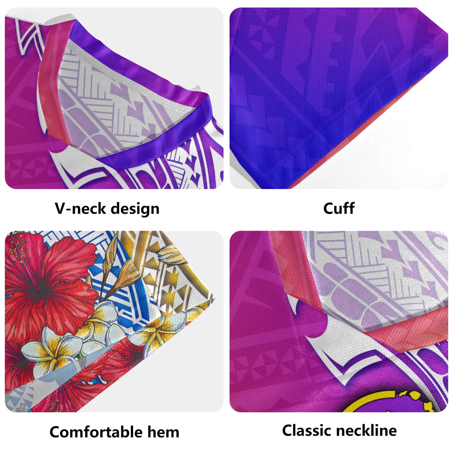 Hawaii Rugby Jersey Turtle Polynesian Tribal Tropical Flowers