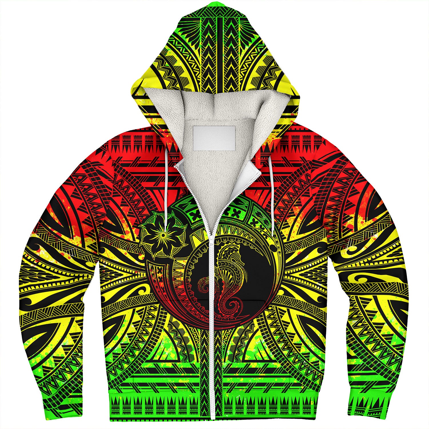 Hawaii Sherpa Hoodie Custom Seahorse Polynesian Tattoo Reggae