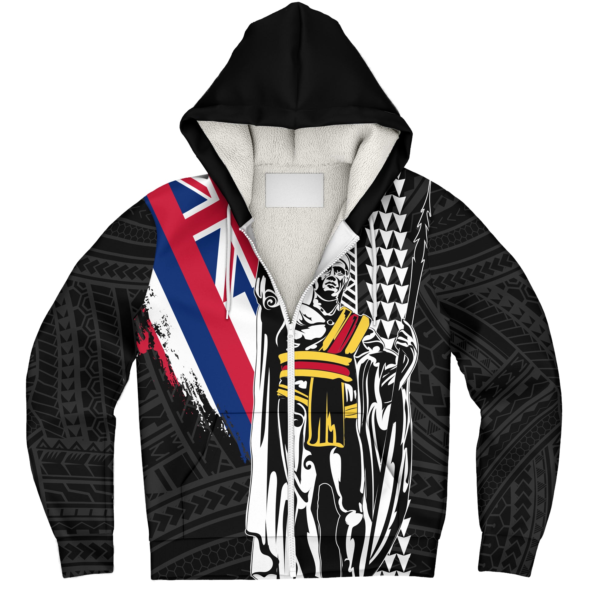 Hawaii Sherpa Hoodie King Kamehameha I Kakau Flag Grunge