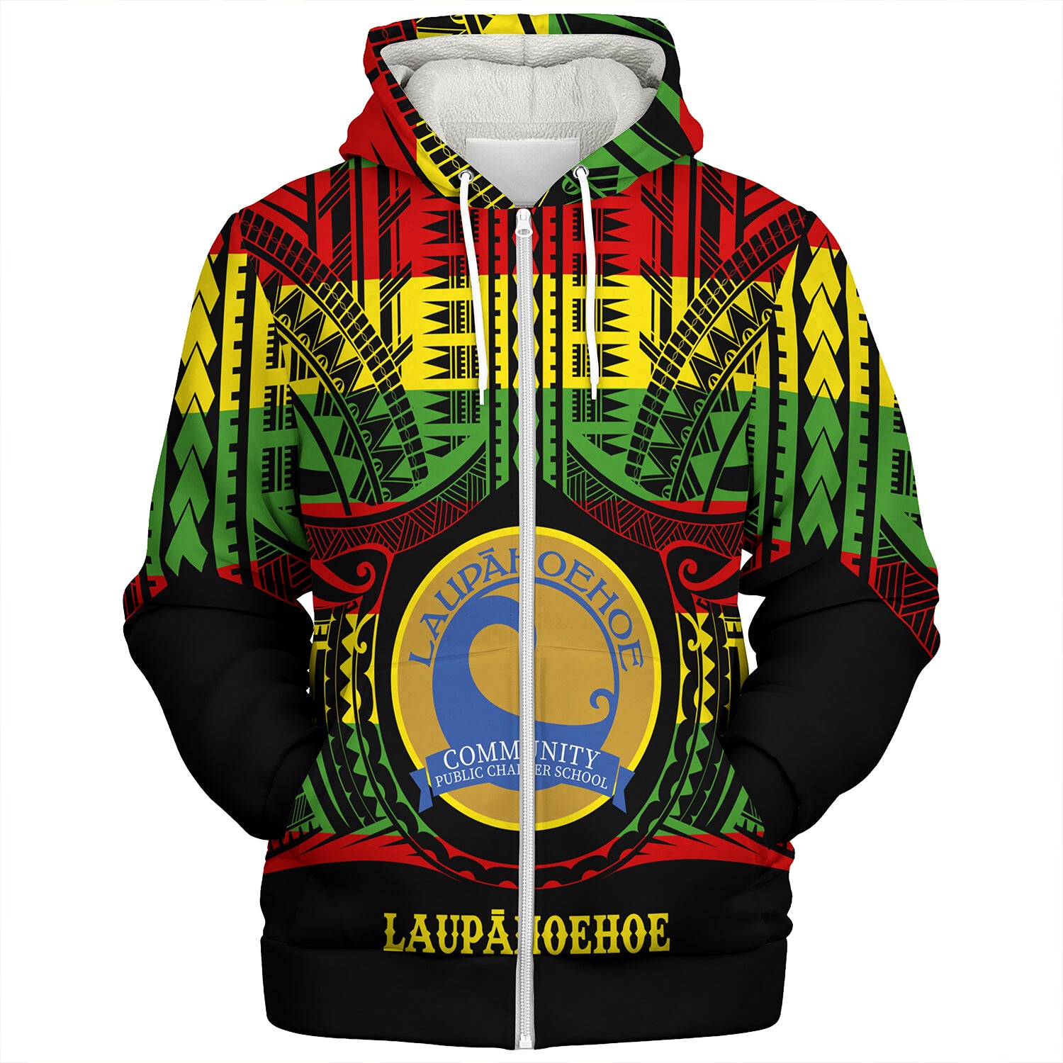 Hawaii Sherpa Hoodie Laupahoehoe Community Public Charter School Reggae Color Polynesian