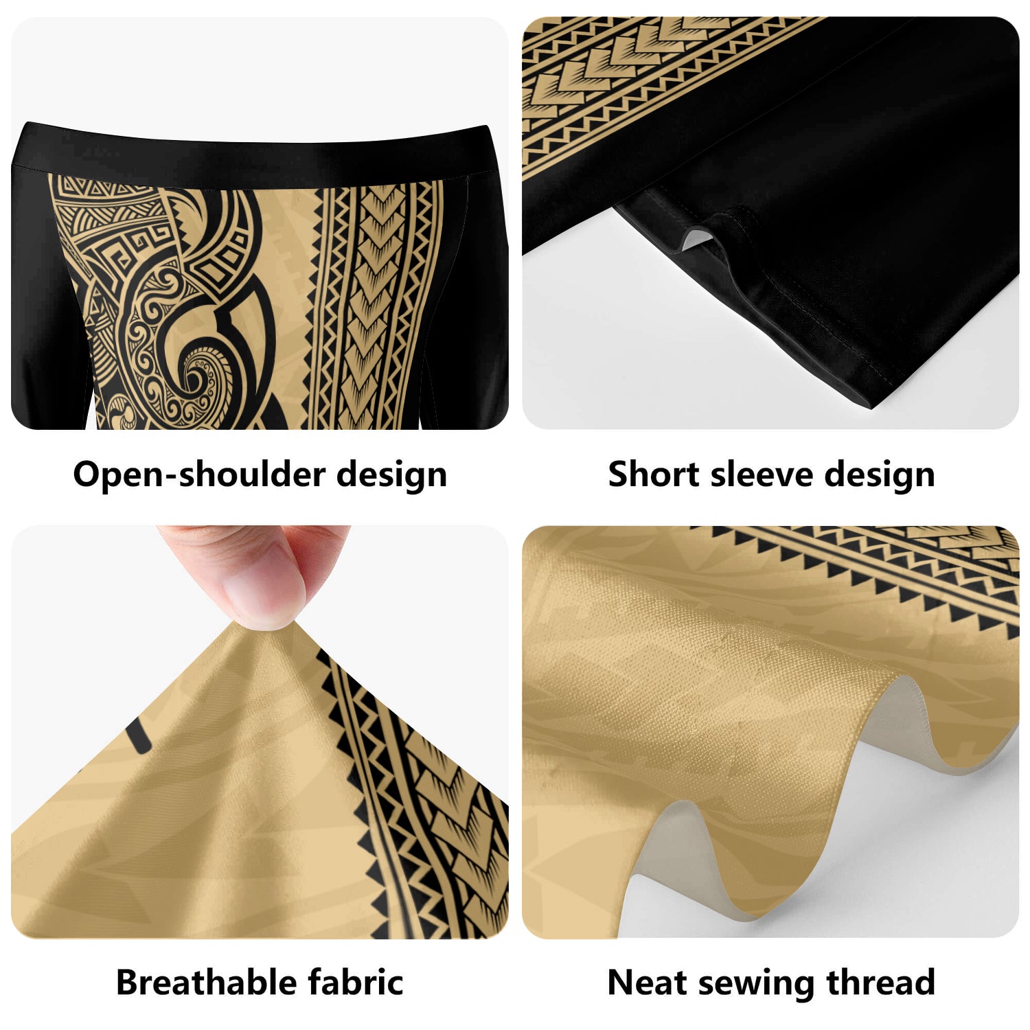 Hawaii Short Sleeve Off The Shoulder Lady Dress Polynesia Kanaka Tribal Tattoo