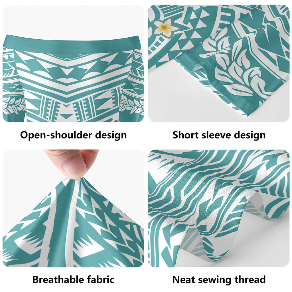 Hawaii Short Sleeve Off The Shoulder Lady Dress Polynesian Little Plumeria