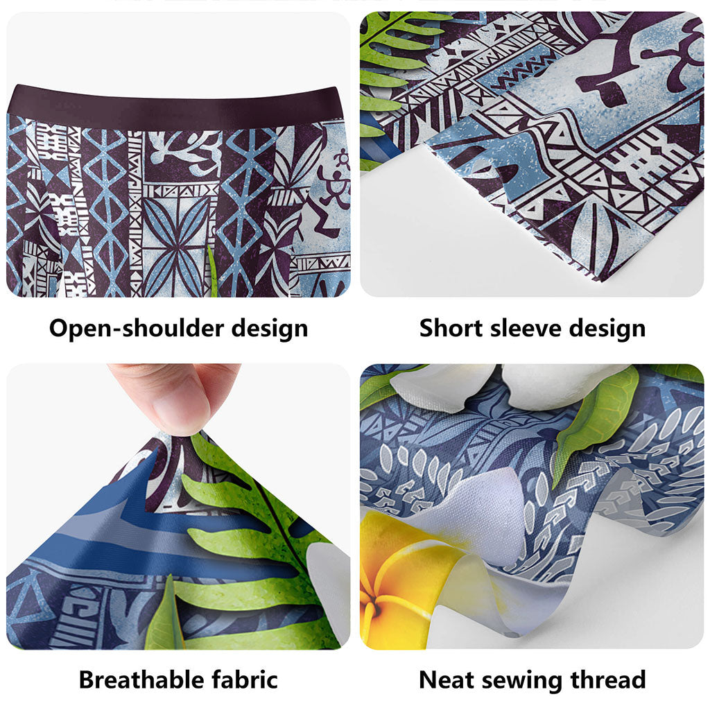 Hawaii Short Sleeve Off The Shoulder Lady Dress Tapa Turtle Plumeria
