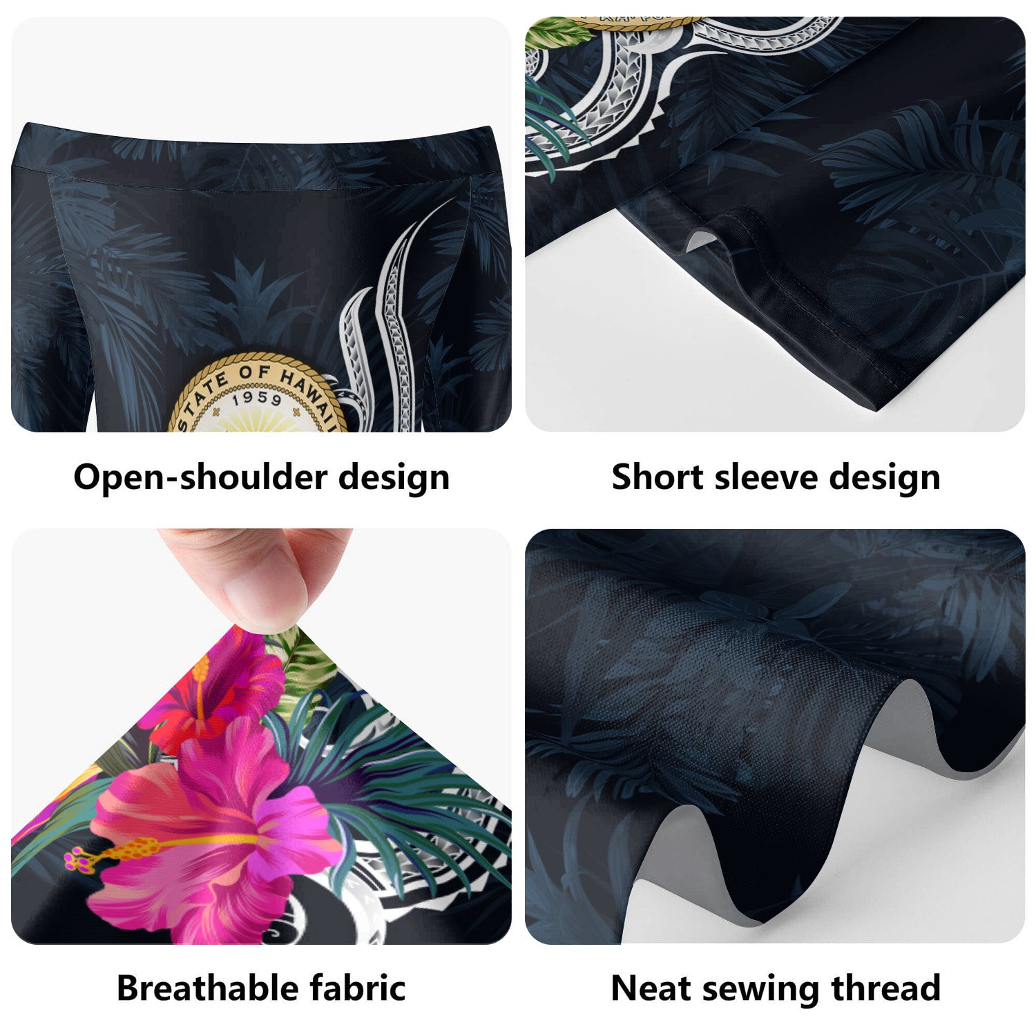 Hawaii Short Sleeve Off The Shoulder Lady Dress Tropical Flower