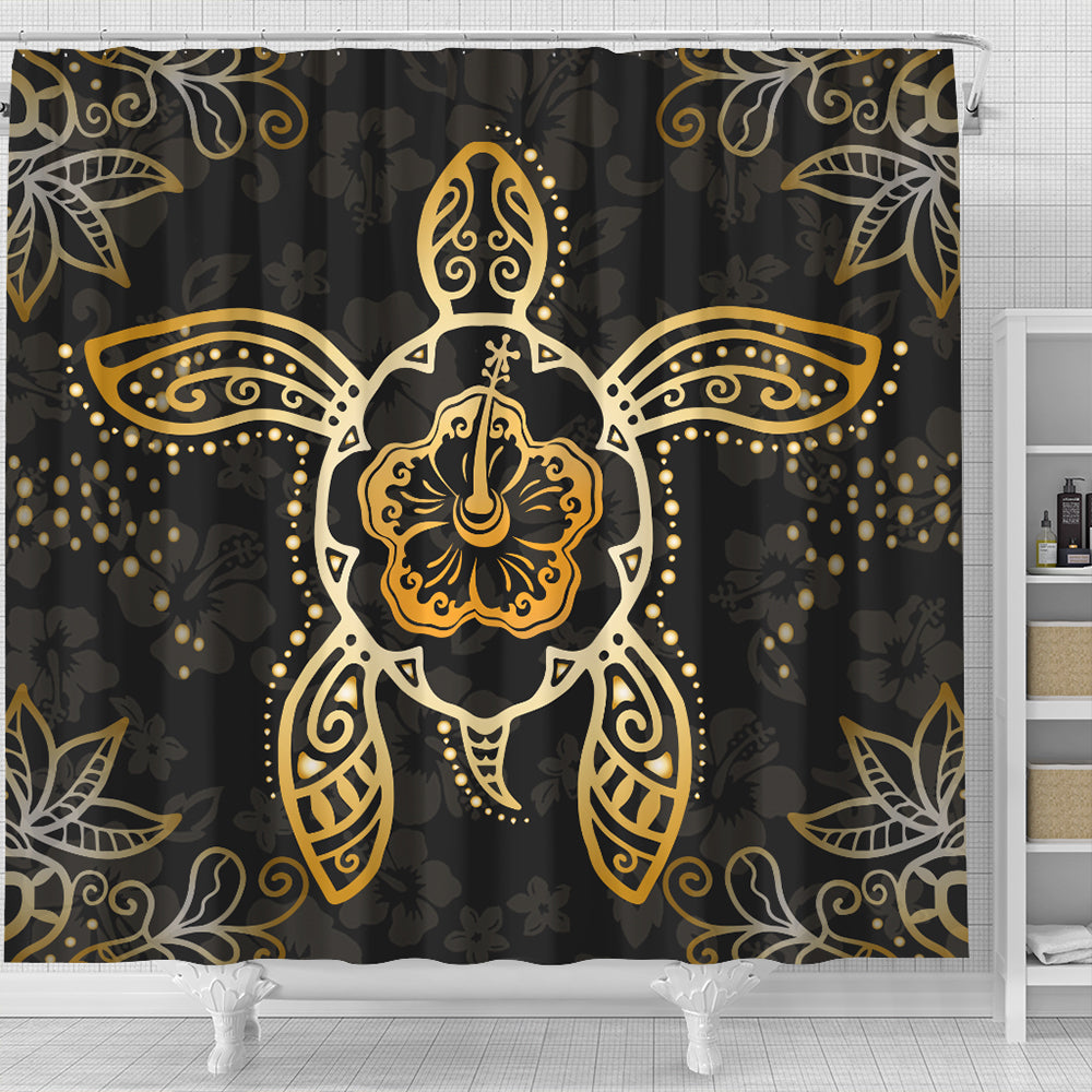 Hawaii Shower Curtain Golden Hibiscus And Turtle