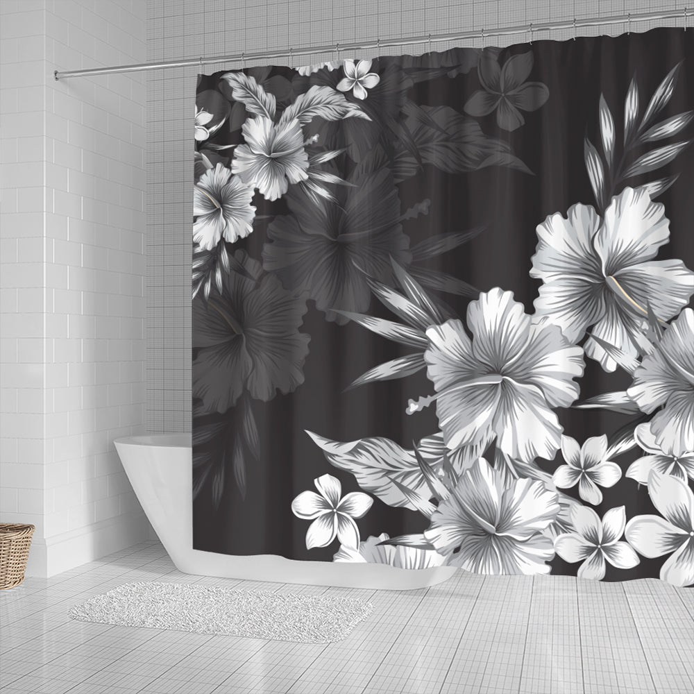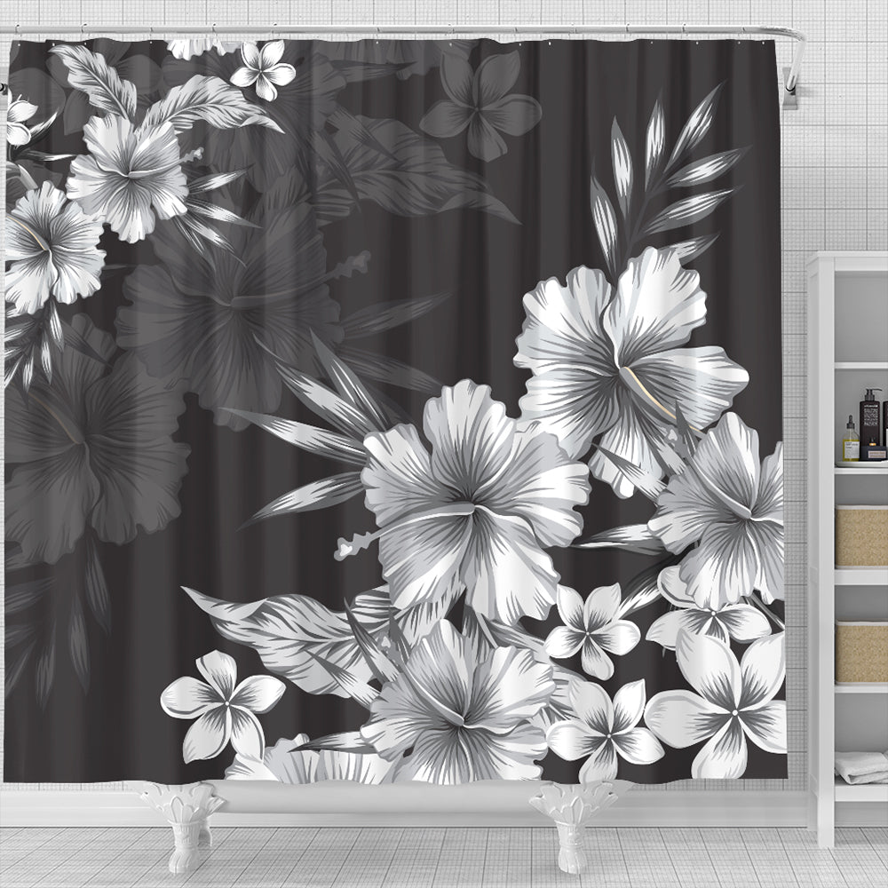 Hawaii Shower Curtain Hibiscus And Plumeria B&W