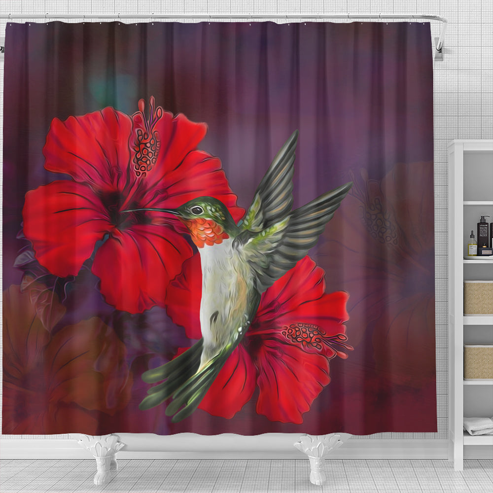 Hawaii Shower Curtain Hibiscus Hummingbird