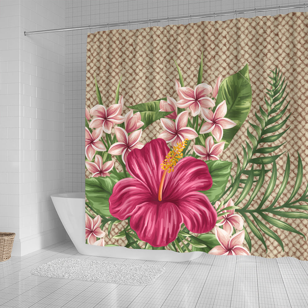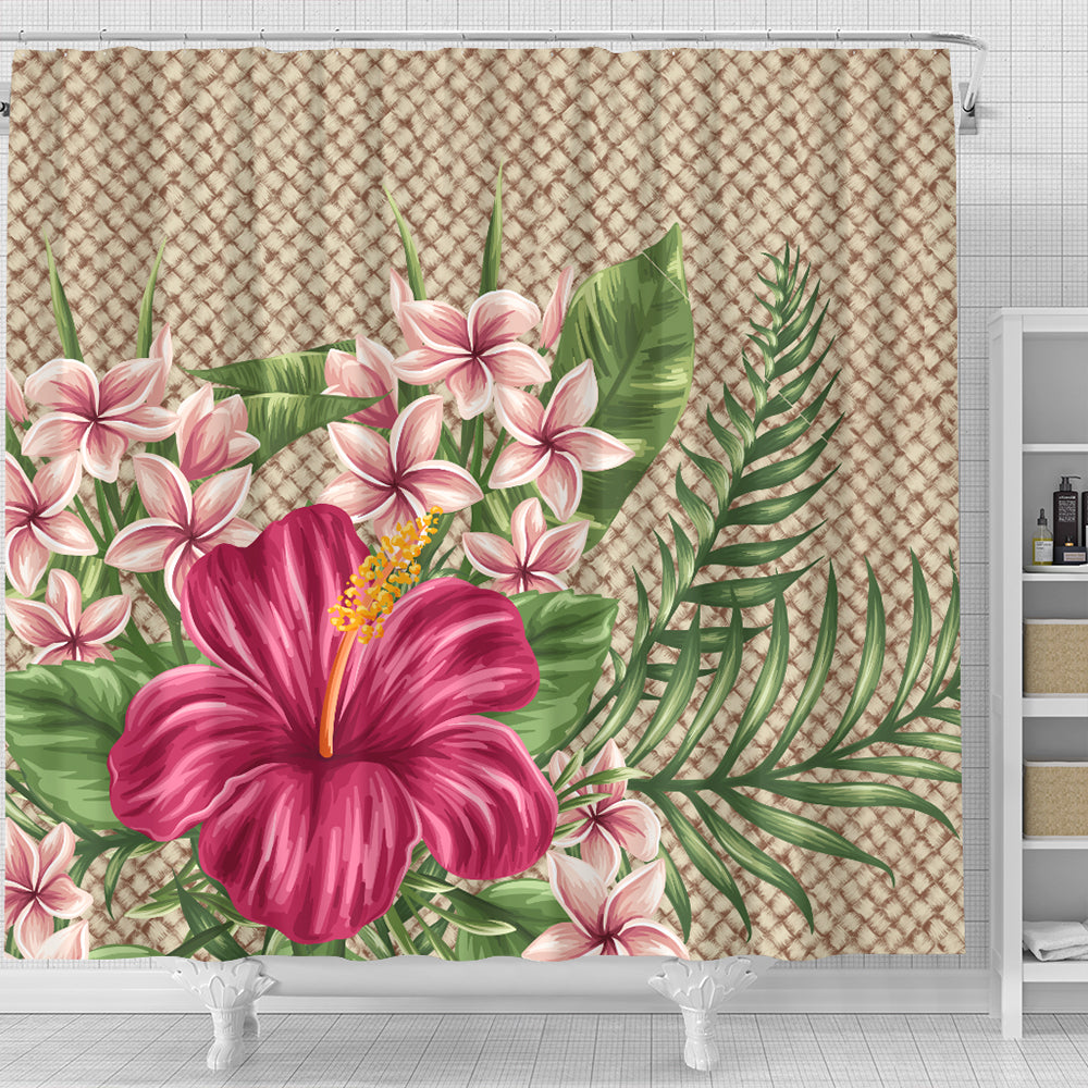 Hawaii Shower Curtain Hibiscus Plumeria Palm Leaves Lauhala Background Polynesian