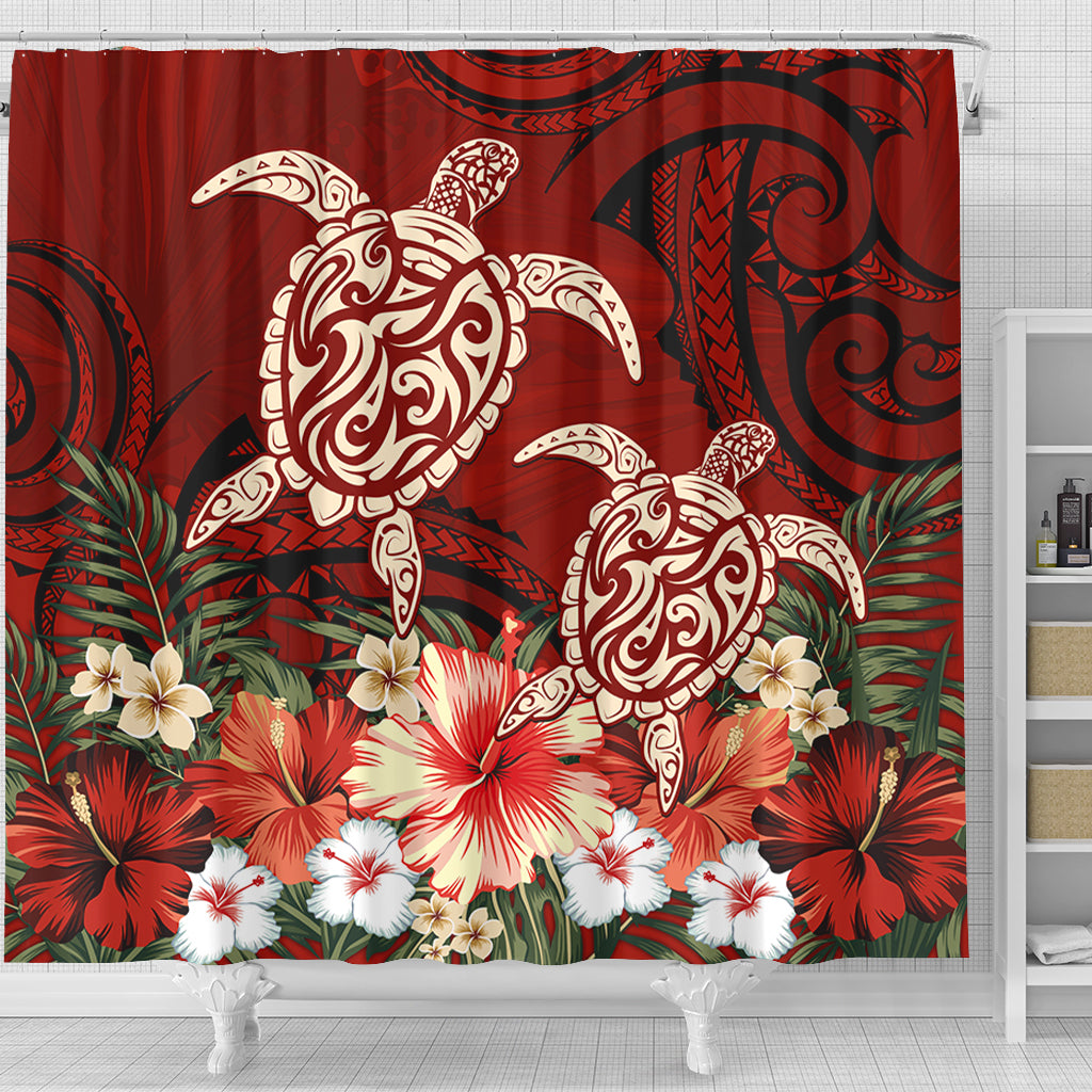 Hawaii Shower Curtain Polynesia Turtle Drawing Tropical Flower