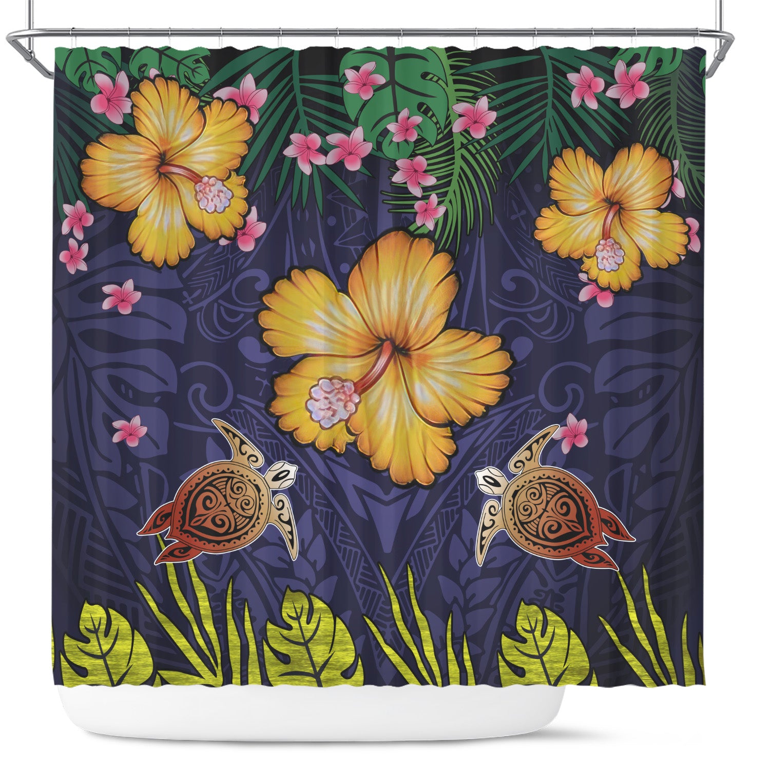 Hawaii Shower Curtain Polynesian Patterns Turtle Couple Hibiscus Plumeria Flowers