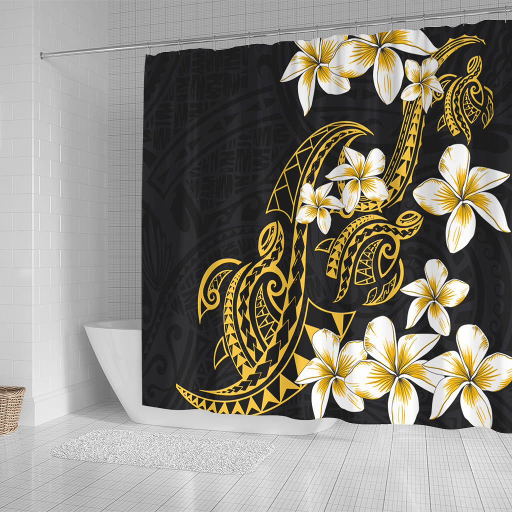 Hawaii Shower Curtain Polynesian Tribal Tattoo Plumeria Flower