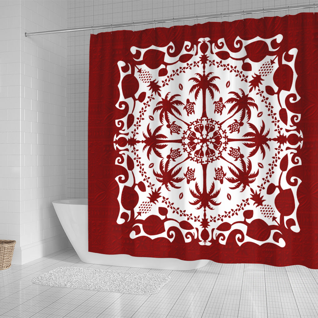 Hawaii Shower Curtain Red Hawaii Pattern Palm Trees and Turtles Polynesian