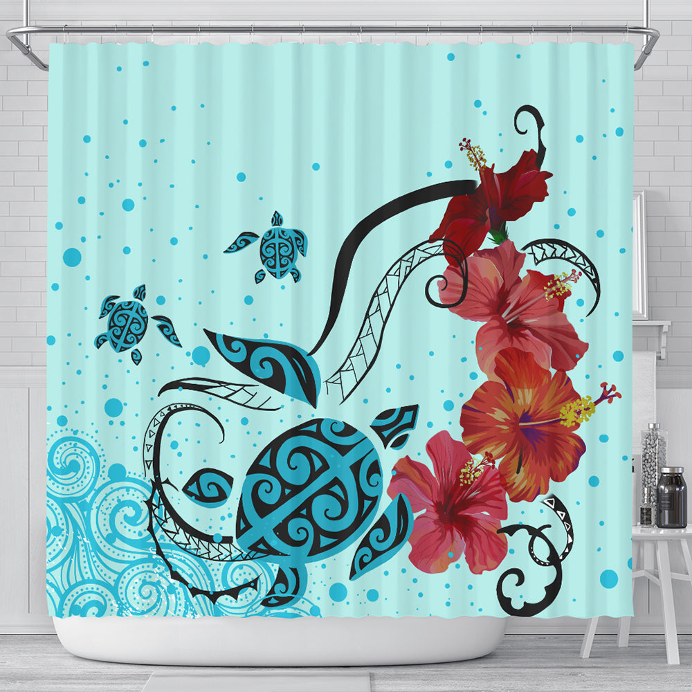 Hawaii Shower Curtain Sea Turtle Hibiscus