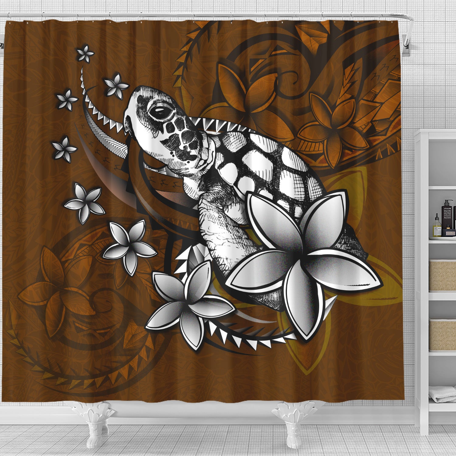 Hawaii Shower Curtain Sea Turtle With Plumeria Polynesian Patterns Retro Style