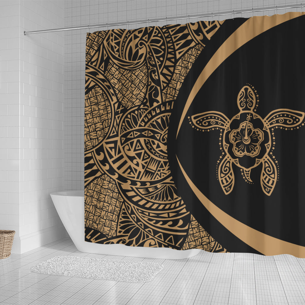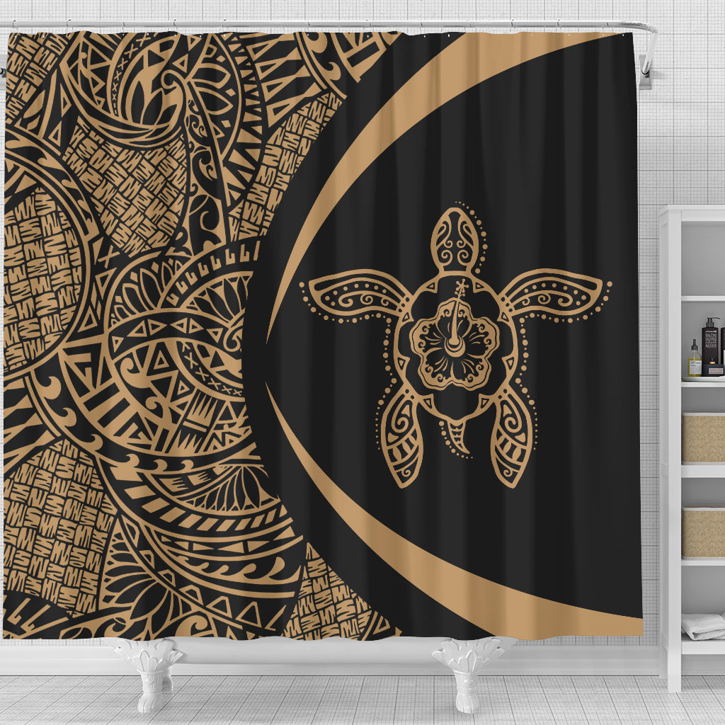Hawaii Shower Curtain Turtle Hibiscus Lauhala Black Gold Circle