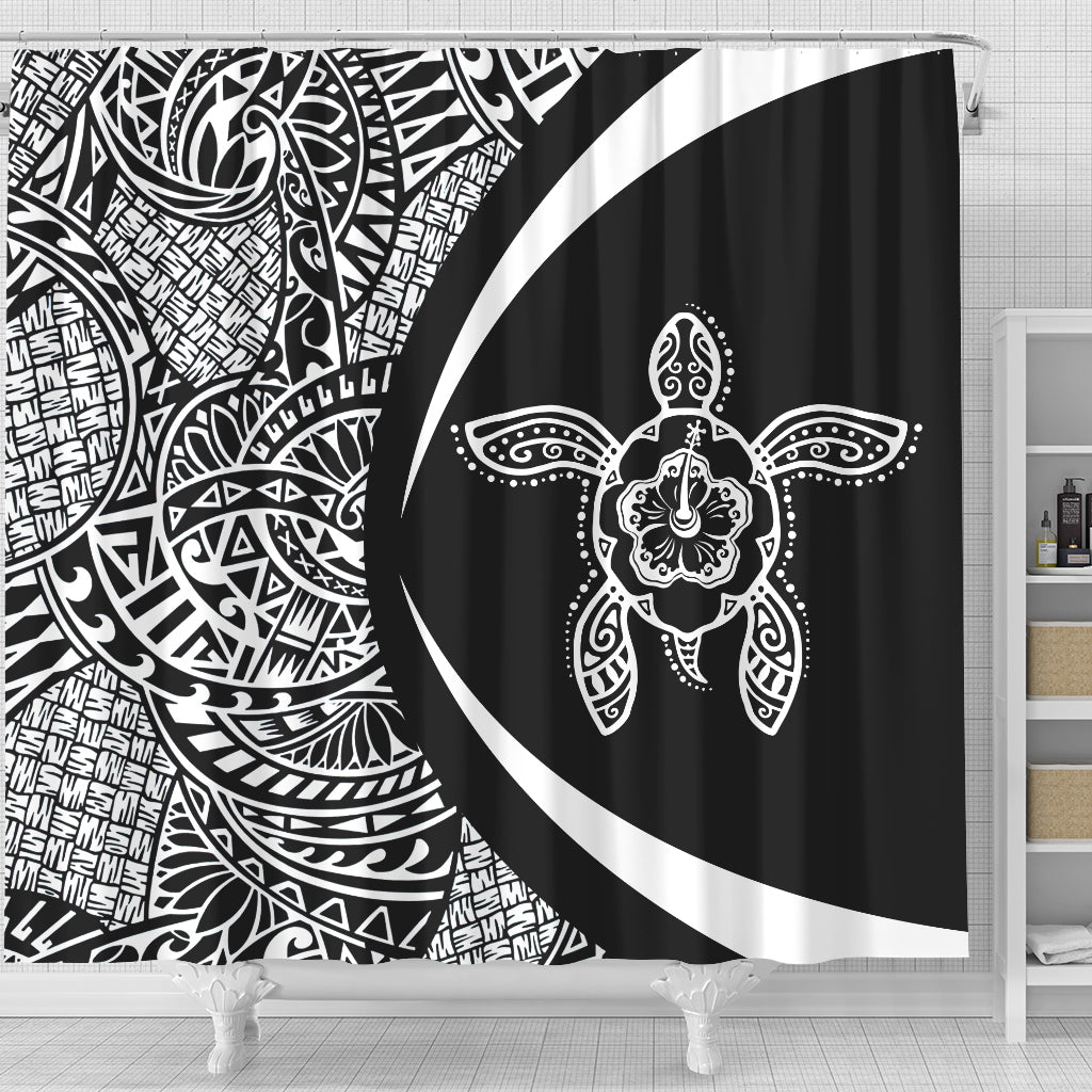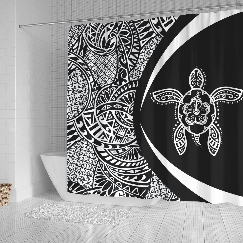 Hawaii Shower Curtain Turtle Hibiscus Lauhala Black White Circle