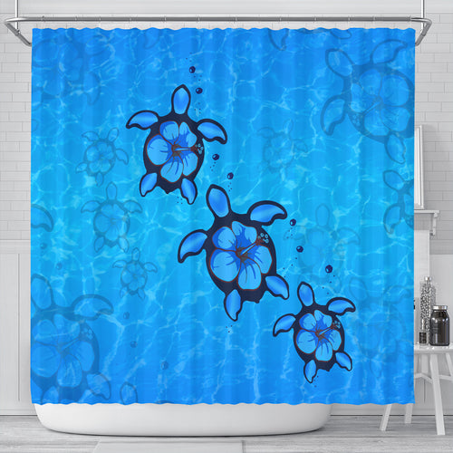 Hawaii Shower Curtain Turtle Hibiscus Swim In Sea