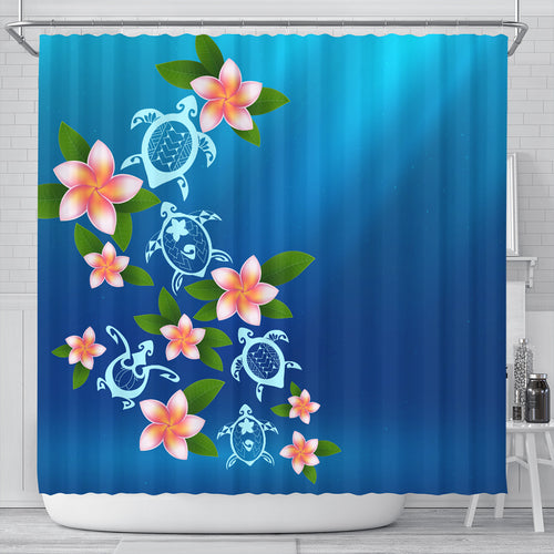Hawaii Shower Curtain Turtle Polynesian Plumeria Ocean